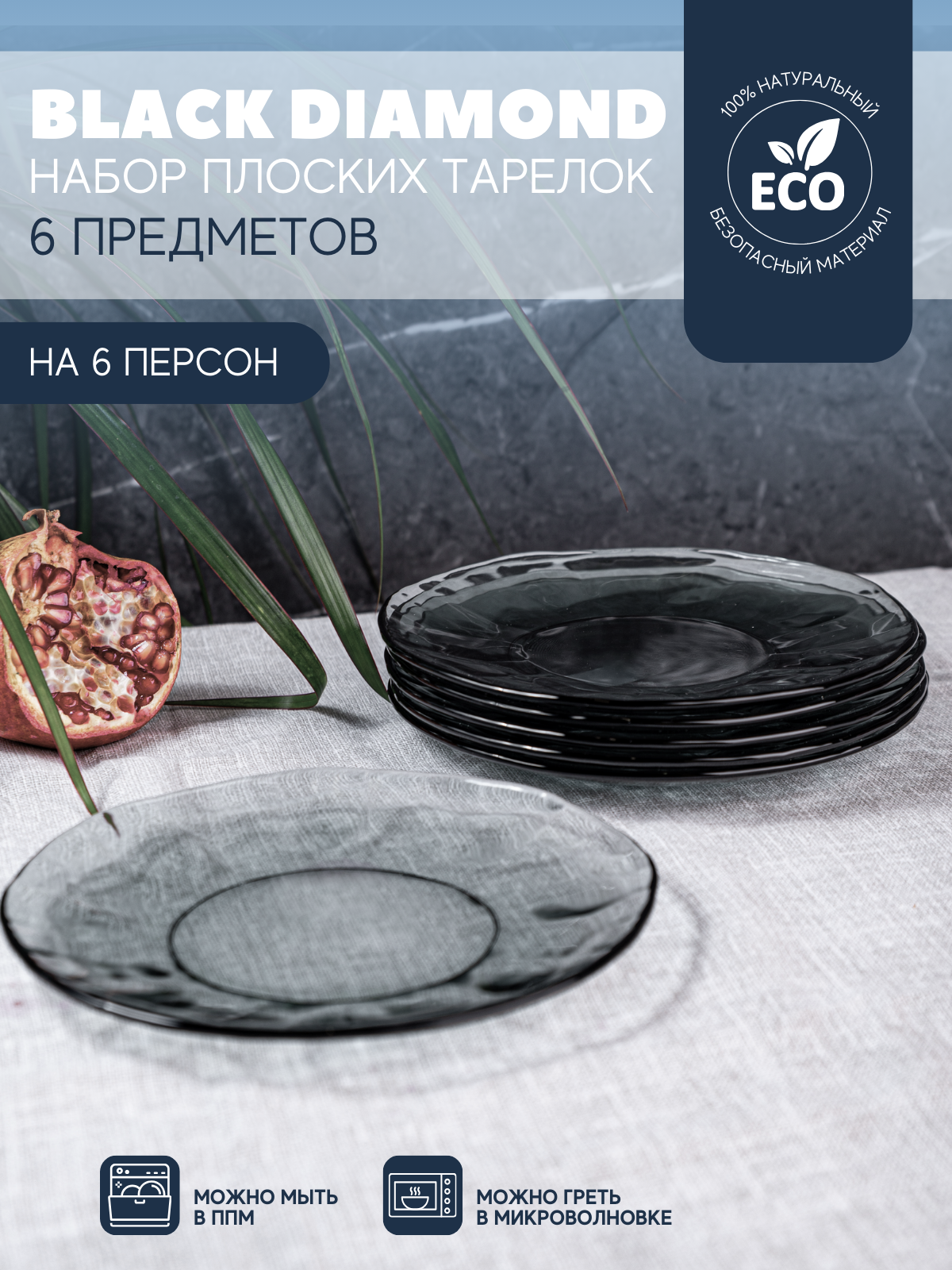 Набор плоских десертных тарелок BLACK DIAMOND 20 см, 6 шт. Версо дизайн информация: