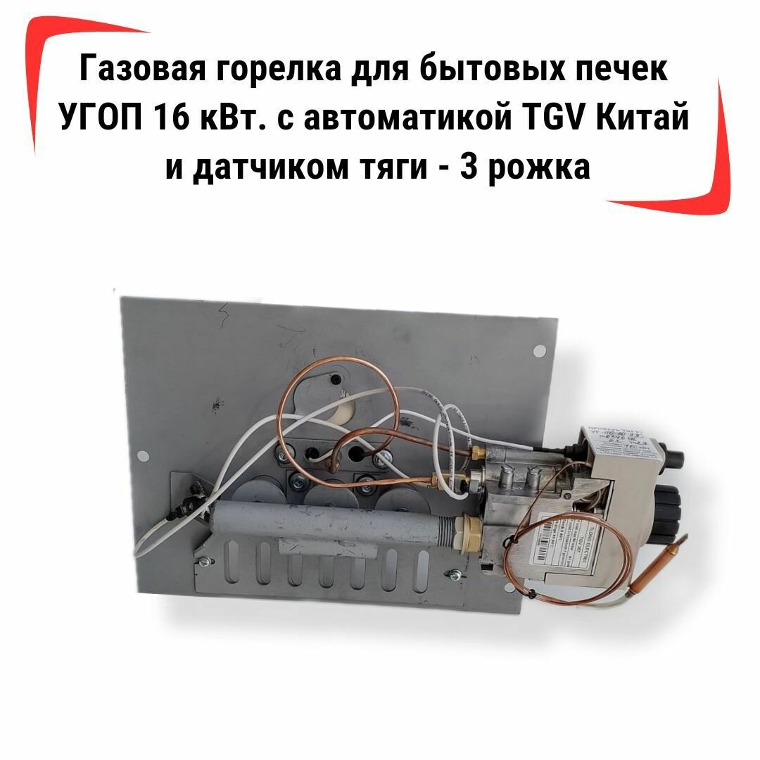 Газовая горелка для бытовых печек угоп 16 кВт. с автоматикой TGV 307 и датчиком тяги - 3 рожка. информация: