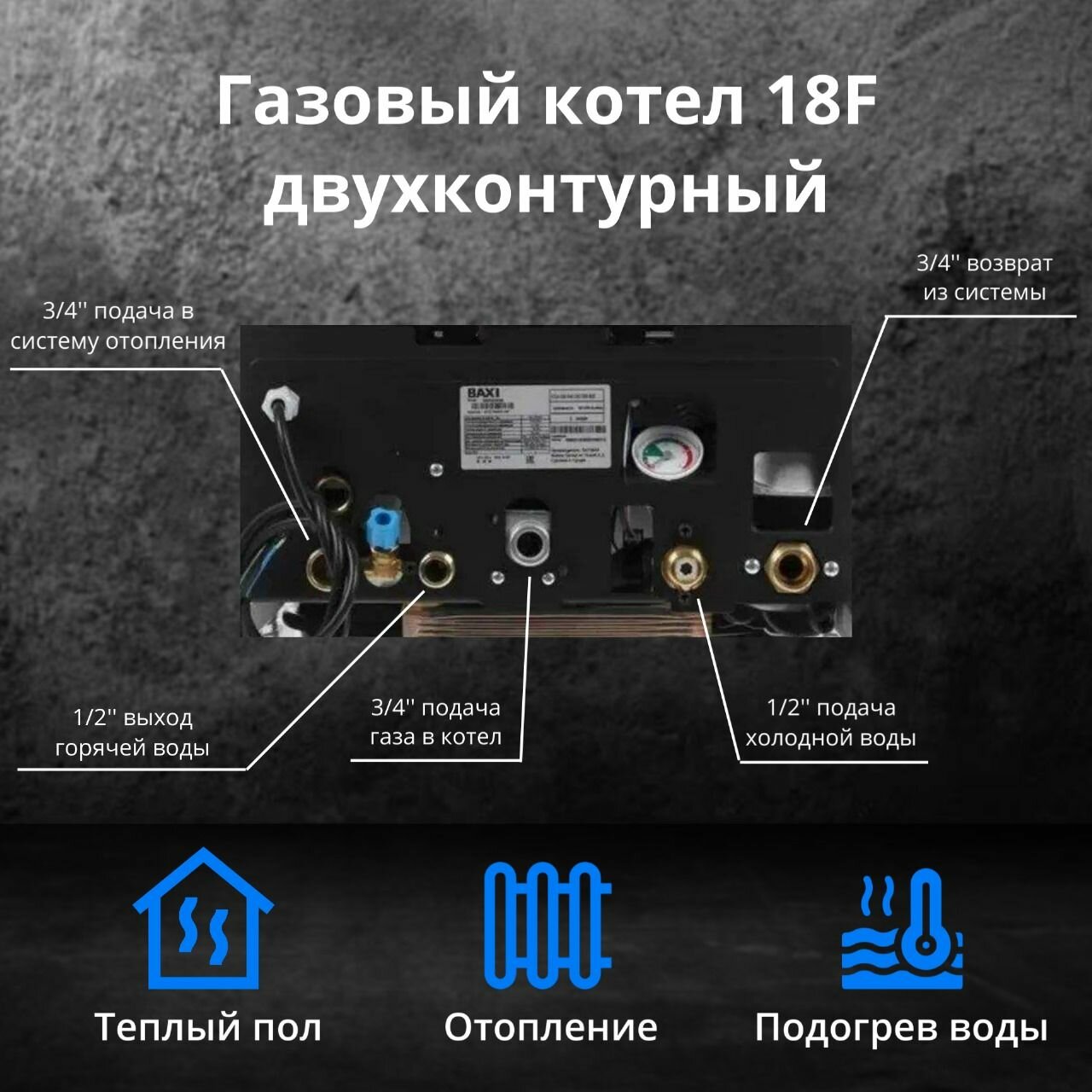| Патрубок подключения контура отопления | 3/4" |