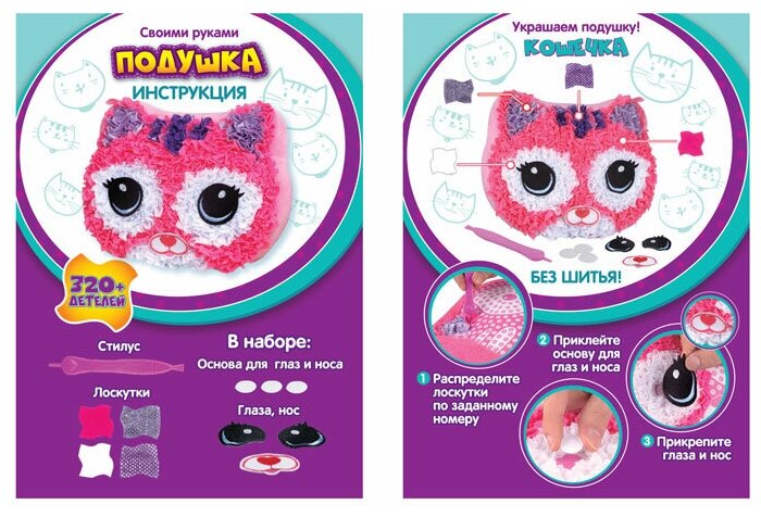 Отзывы на Набор для украшения и декорирования подушки Кошечка "Я дизайнер", 320 деталей, в наборе с аксессуарами PT-00804