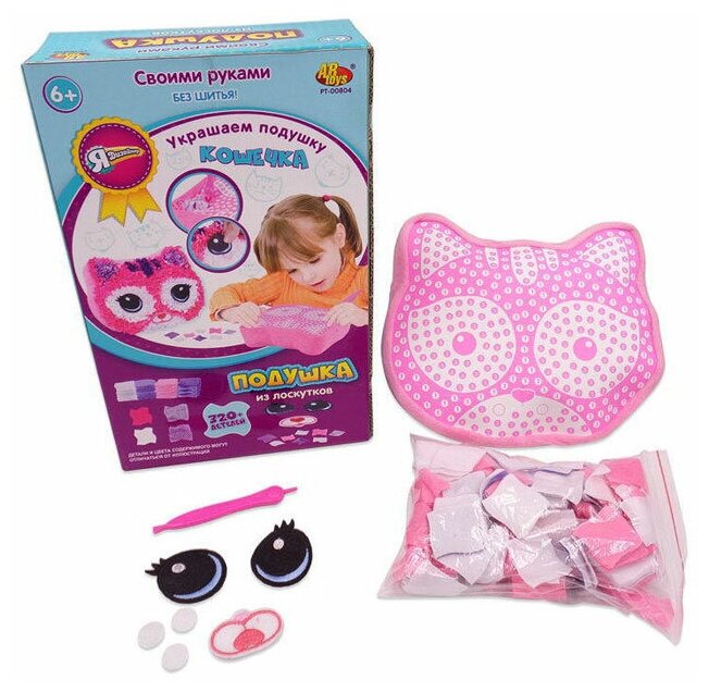 10 цен на Набор для украшения и декорирования подушки Кошечка "Я дизайнер", 320 деталей, в наборе с аксессуарами PT-00804