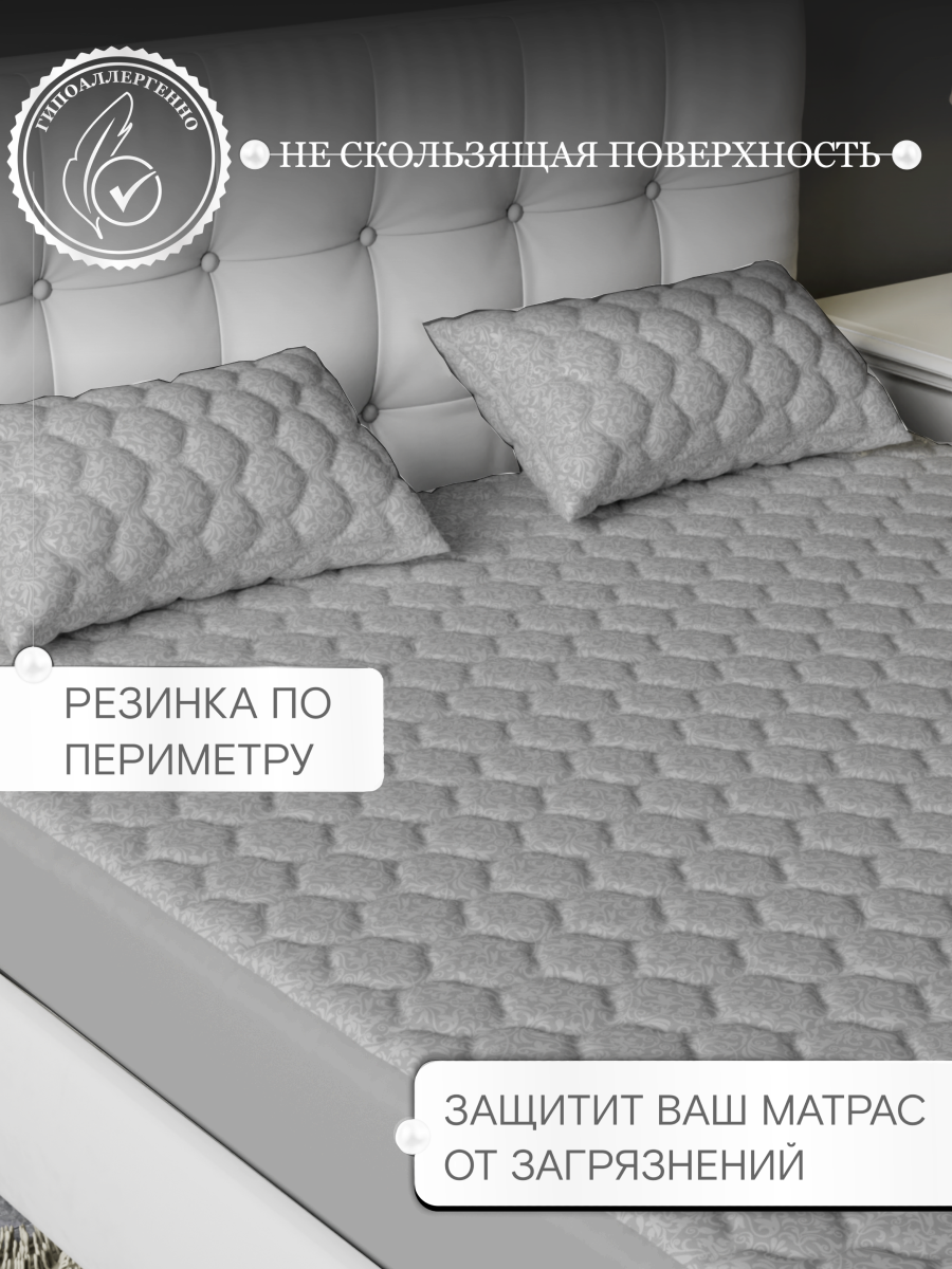 Наматрасник 180х200 защитный, с бортами стеганый на резинке, серый 1 900 ₽