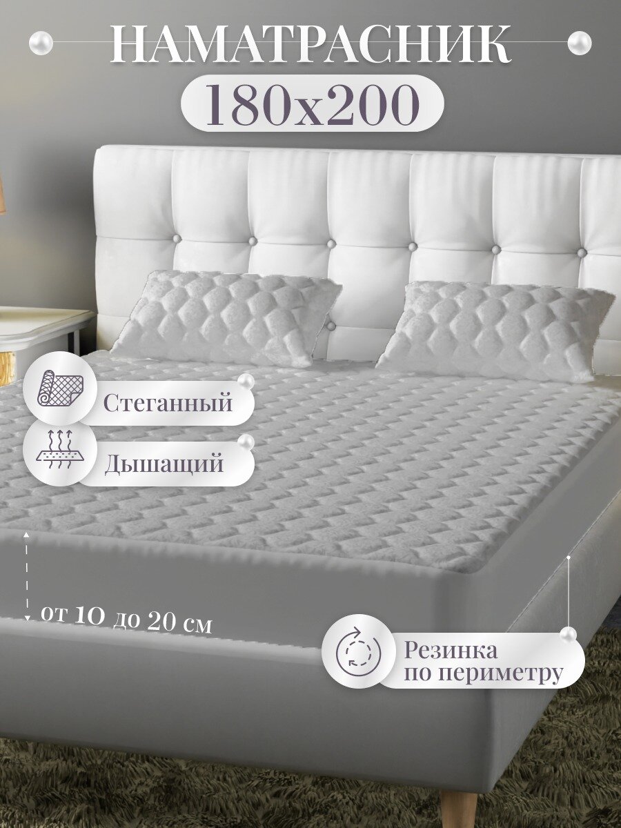10 цен на Наматрасник 180х200, Серый, Защитный чехол, Борт 20, Топпер на матрас