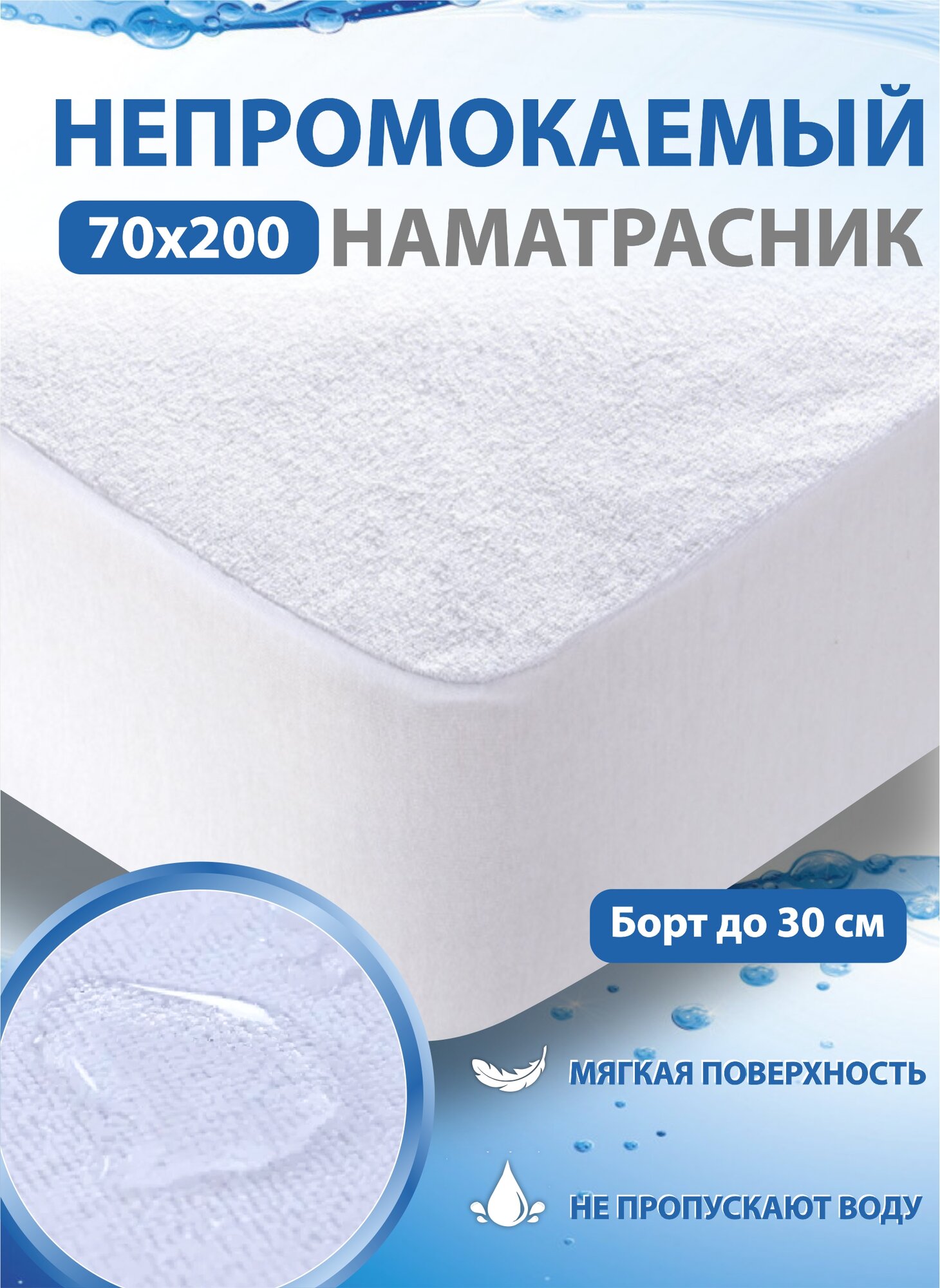 10 цен на Непромокаемый Наматрасник-чехол с резинкой по периметру, махра/мембрана 70х200