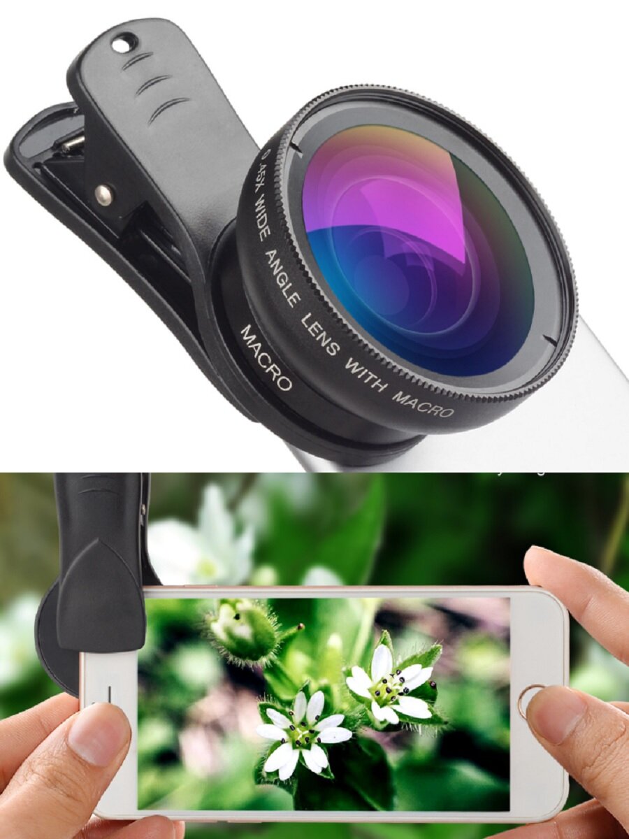 10 цен на Объектив для смартфона 2 в 1 макро-широкоугольный 0,45-12,5X
