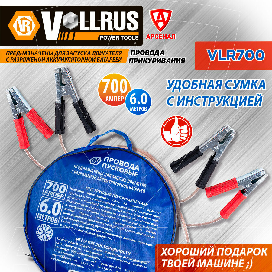 10 цен на Провода прикуривания 700А, длина 6м. с зажимами (в сумке) перчатки в подарок, VLR 700