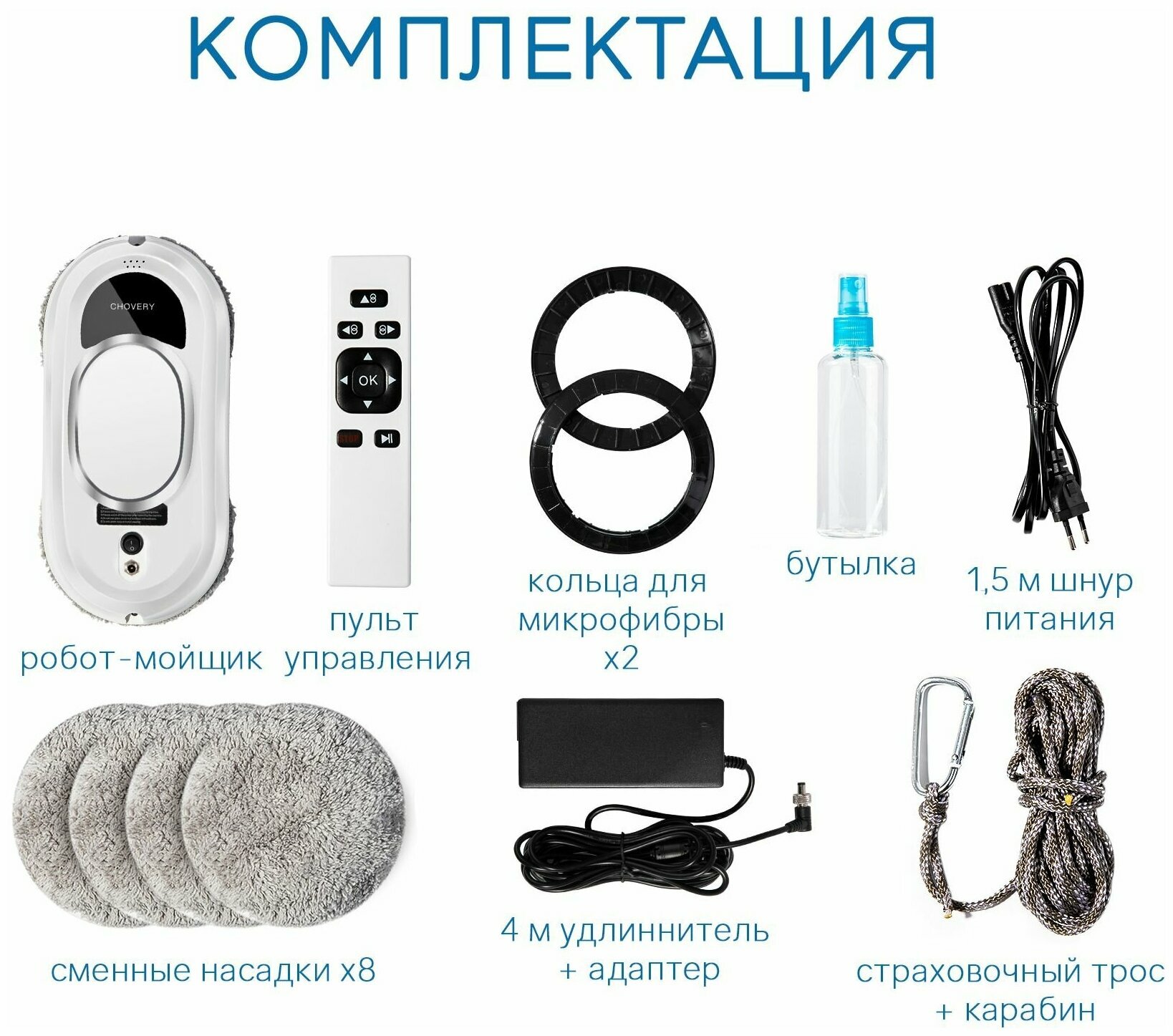 Робот-мойщик окон, с распылителем, страховочный шнур 4 м, пульт ДУ, 90 Вт, 10 сменных тряпок