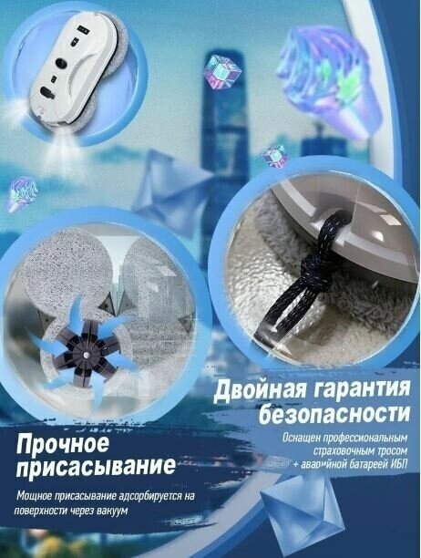 Робот-мойщик окон, с распылителем, страховочный шнур 4 м, пульт ДУ, 90 Вт, 10 сменных тряпок