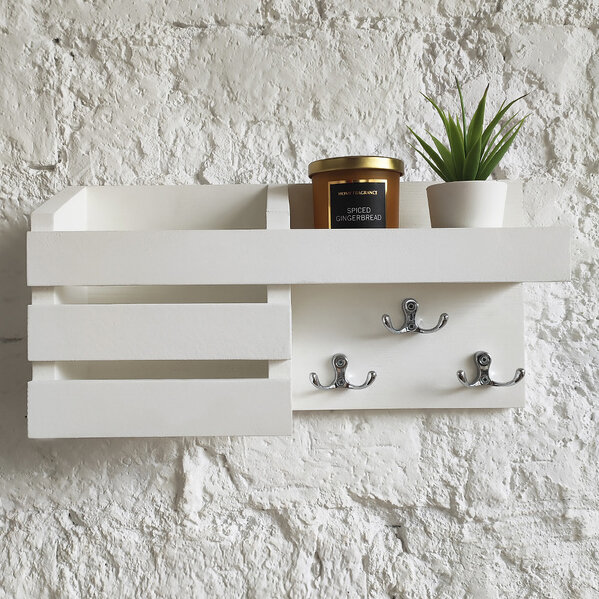 Отзывы на Ключница настенная белая из дерева с крючками и полкой на стену