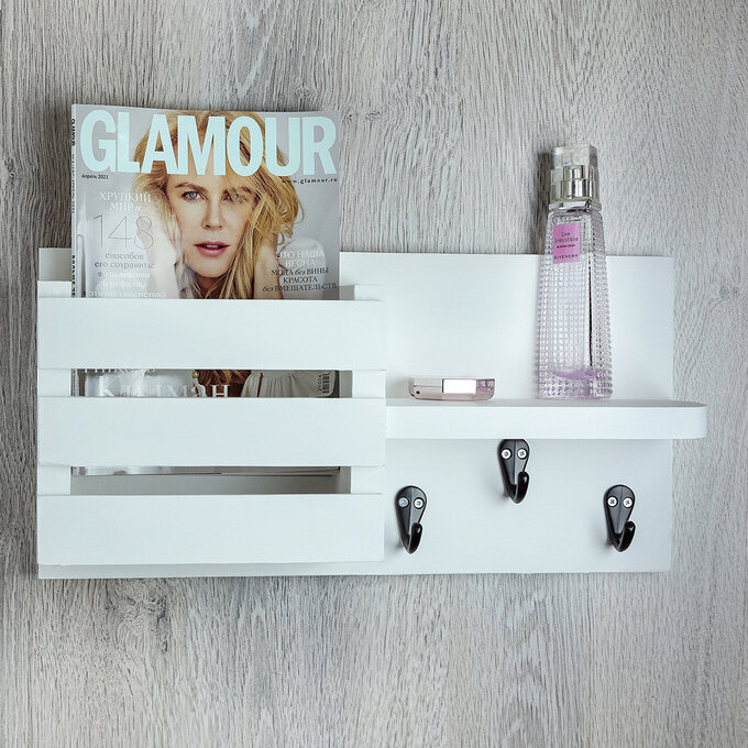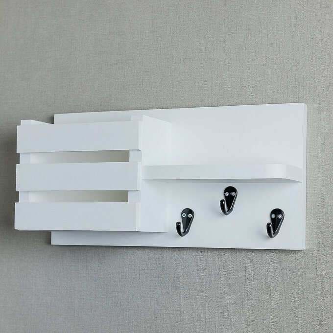 Ключница настенная белая из дерева с крючками и полкой на стену 2 490 ₽