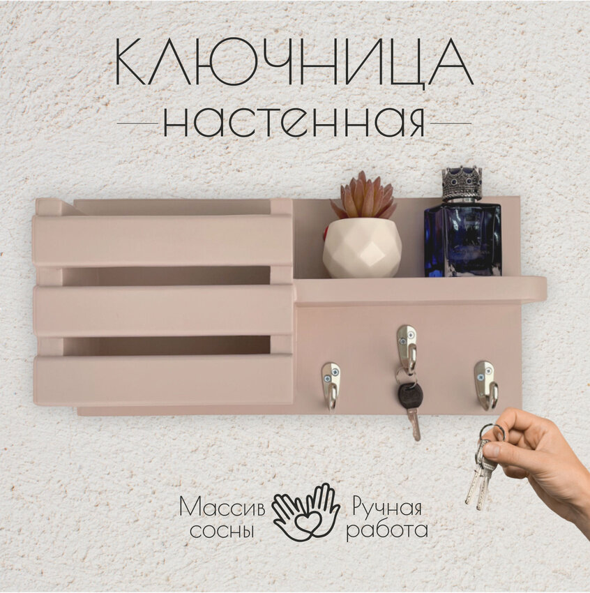 Ключница настенная из дерева / Деревянная ключница / Полка в прихожую / Настенная полка