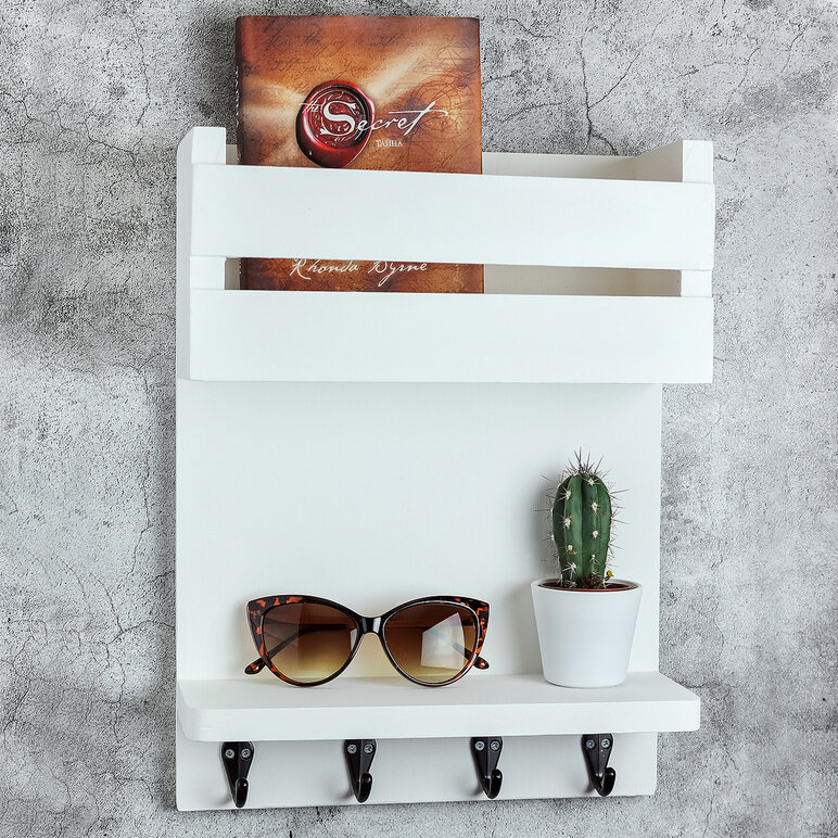 Отзывы на Ключница настенная белая с полкой из дерева в прихожую для ключей
