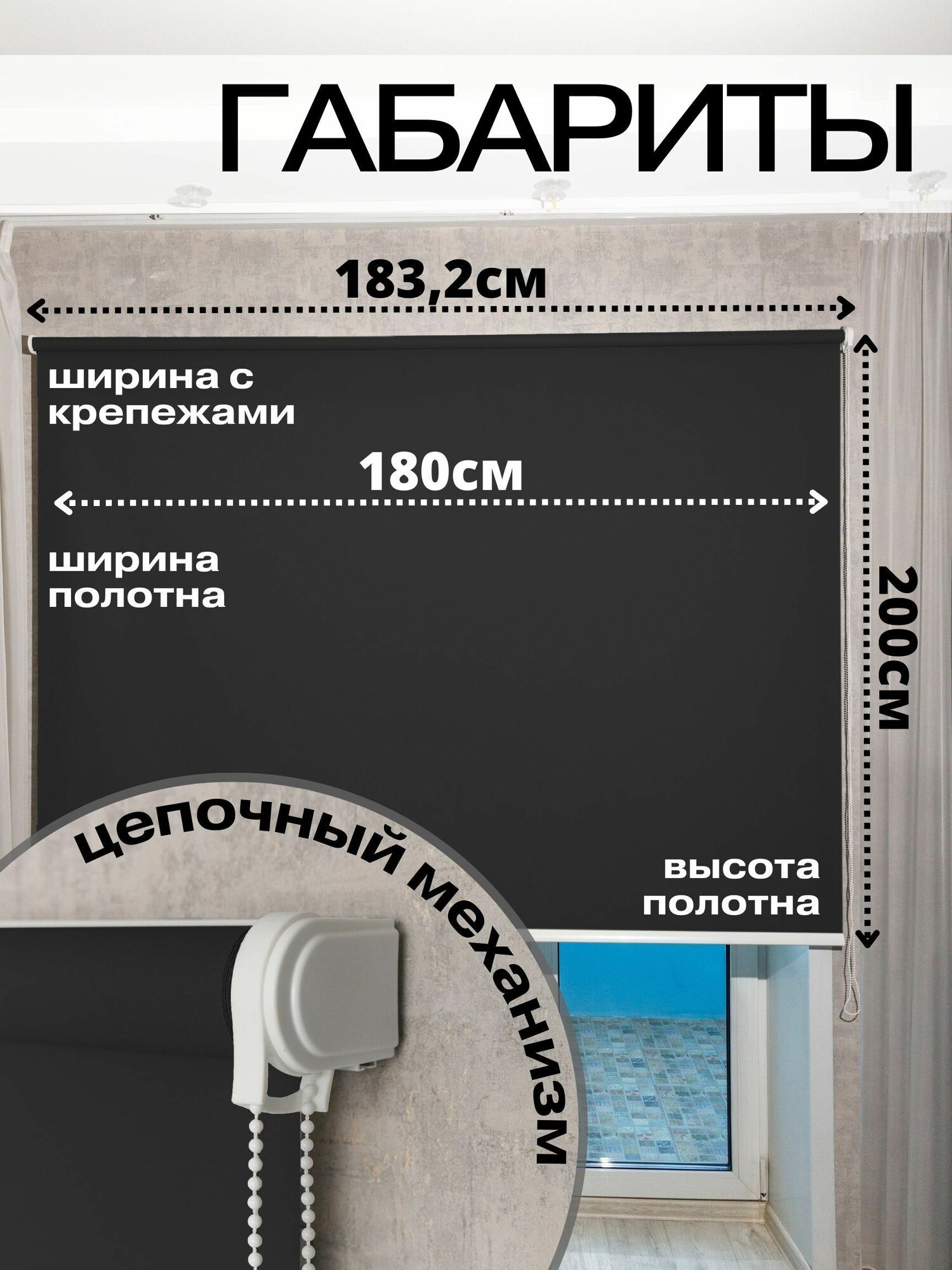 Рулонные шторы ширина 180 см высота 200 см Roll Life черный не блэкаут на окно, балкон для дома, офиса, школы информация: