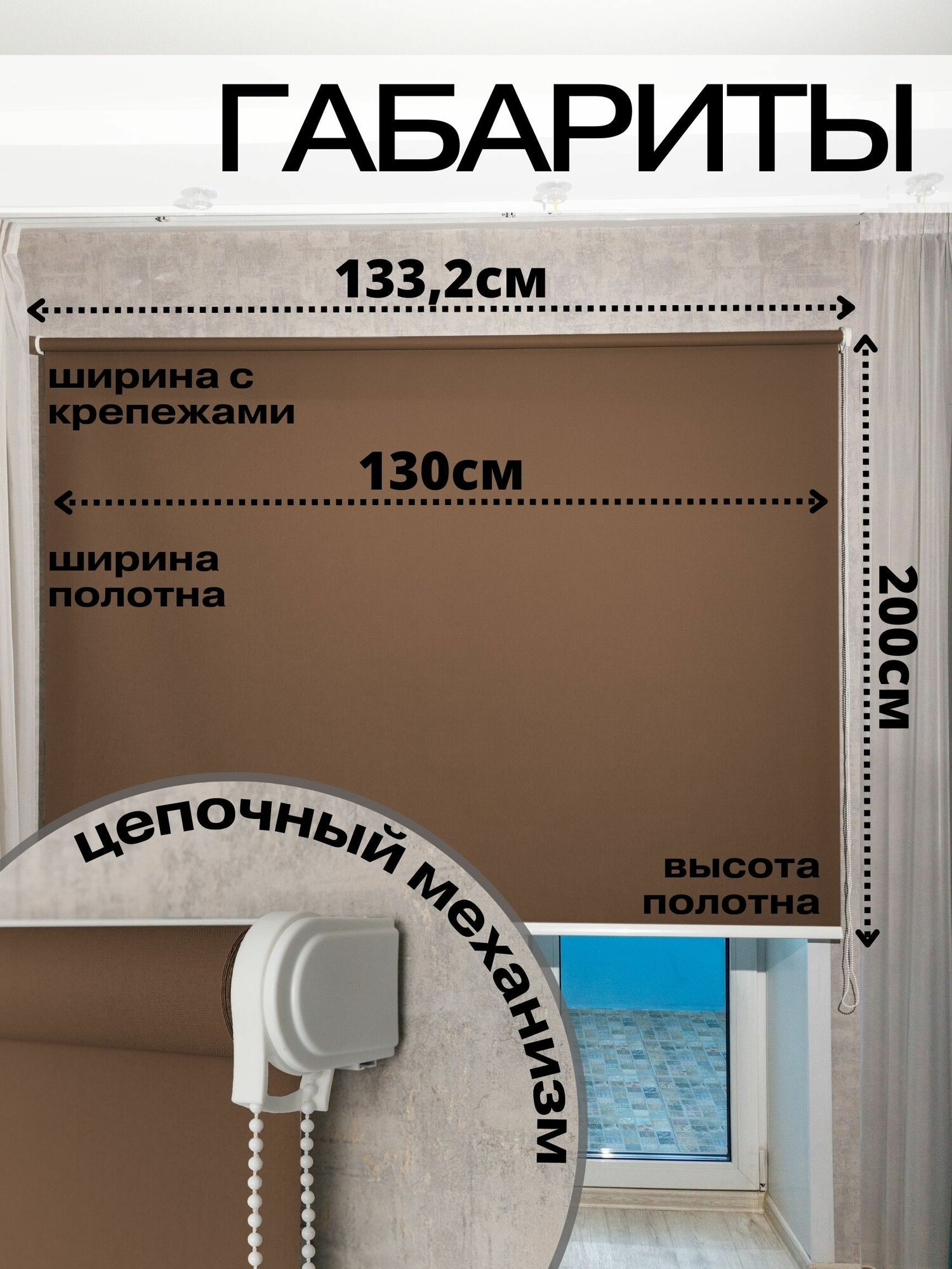 Рулонные шторы ширина 130 см высота 200 см Roll Life коричневые не блэкаут на окно, балкон для дома, офиса, школы информация: