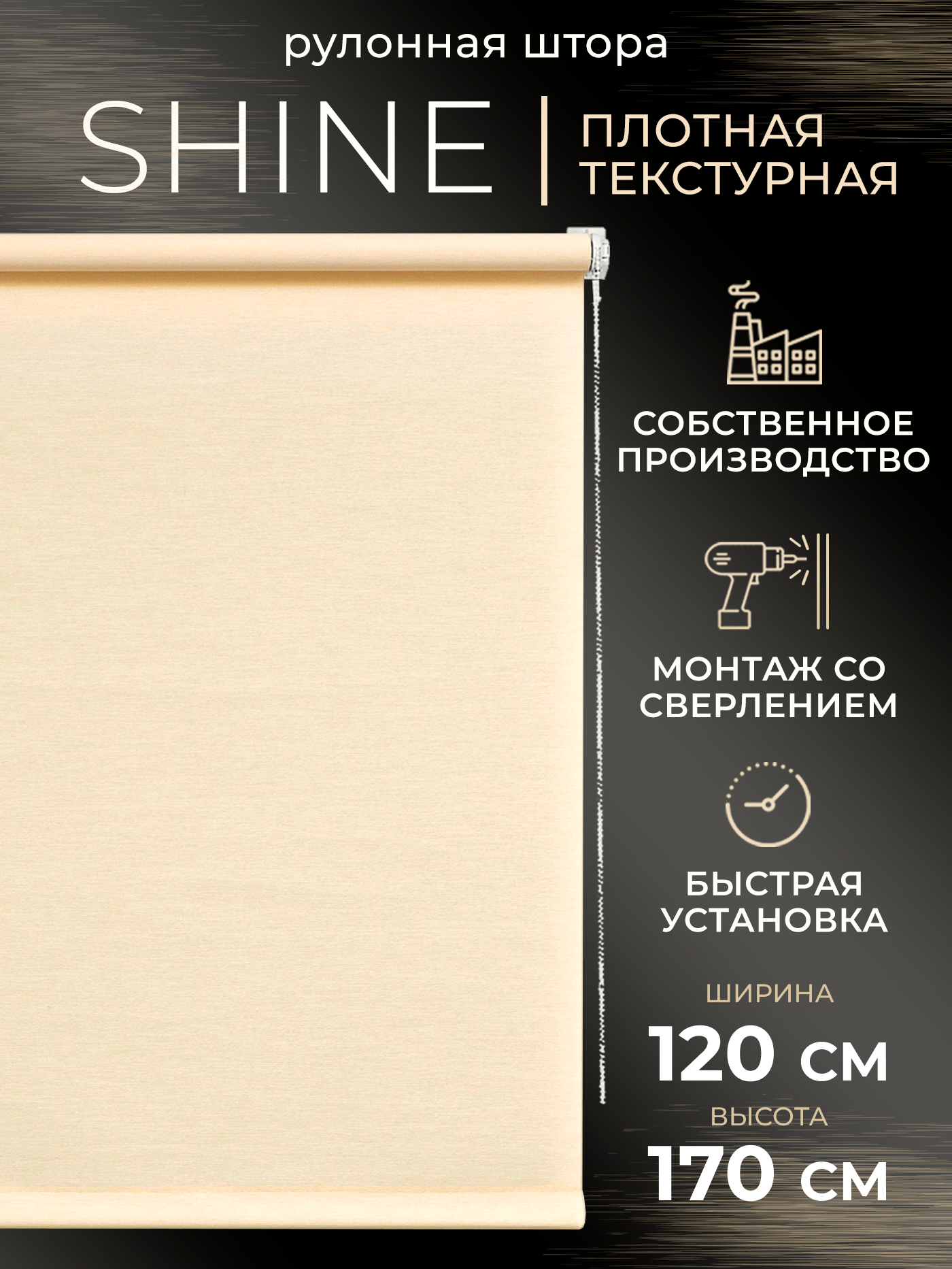 Рулонная штора LM DECOR "Шайн" 07 светло-бежевый 120х170 см по ткани информация: