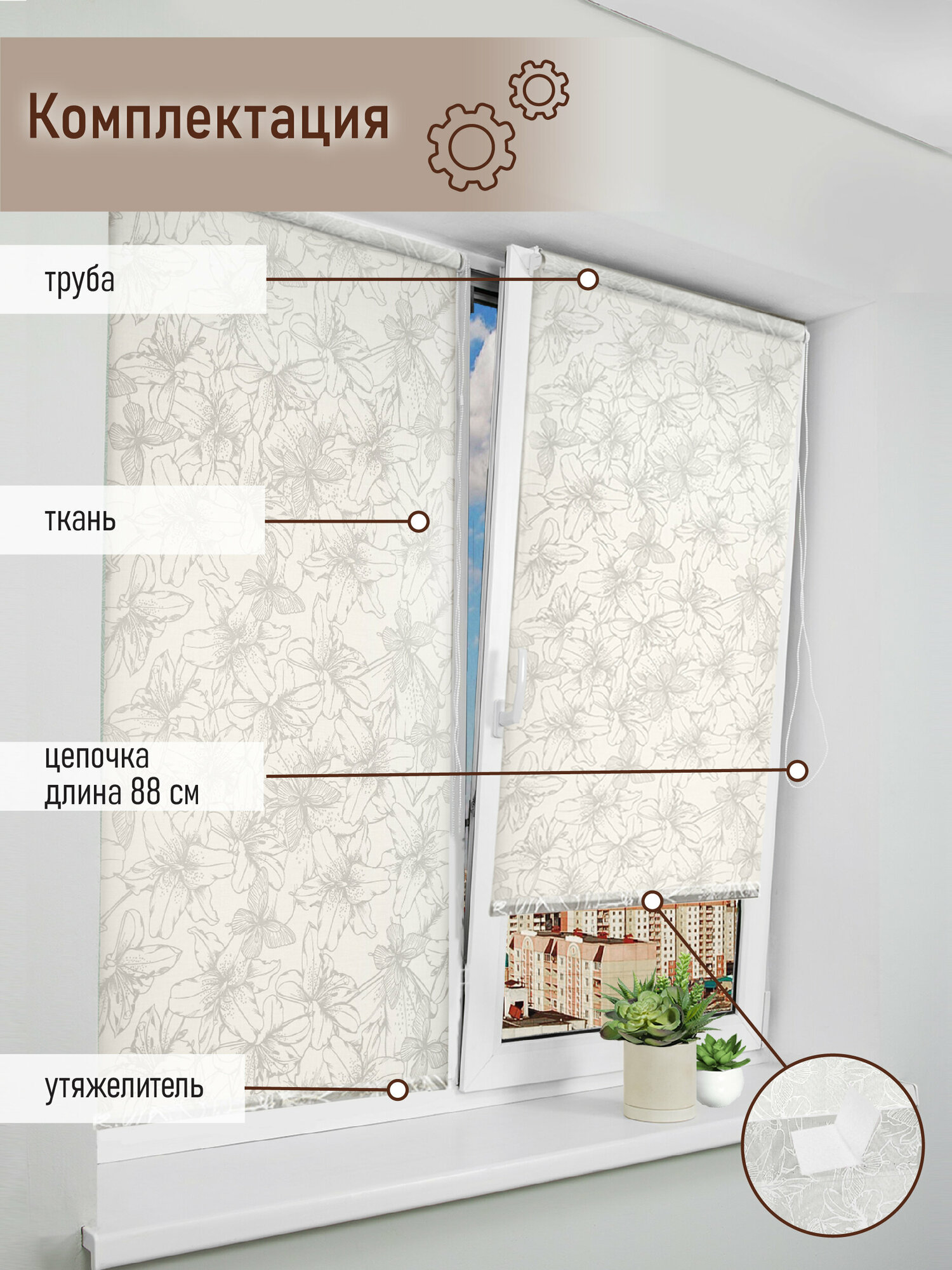 | Комплектация | рулонная штора, монтажный комплект |