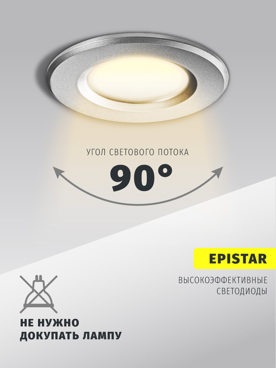 Отзывы на Встраиваемый светодиодный светильник для потолочного монтажа Navigator 94 821, 5 Вт, 3000К, серебро