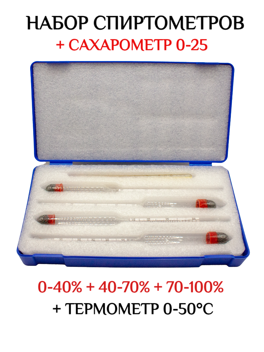 Отзывы на Набор профессиональных ареометров спиртометров с сахарометром 0-25, АСП3 0-40, 40-70, 70-100% + термометр.