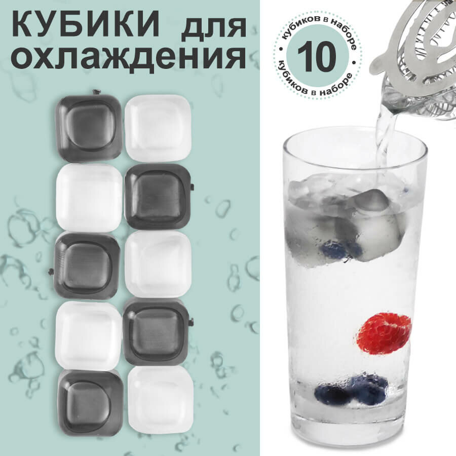 Набор кубиков для охлаждения напитков, 10 шт, пластик, белый/серый, 22021010 информация: