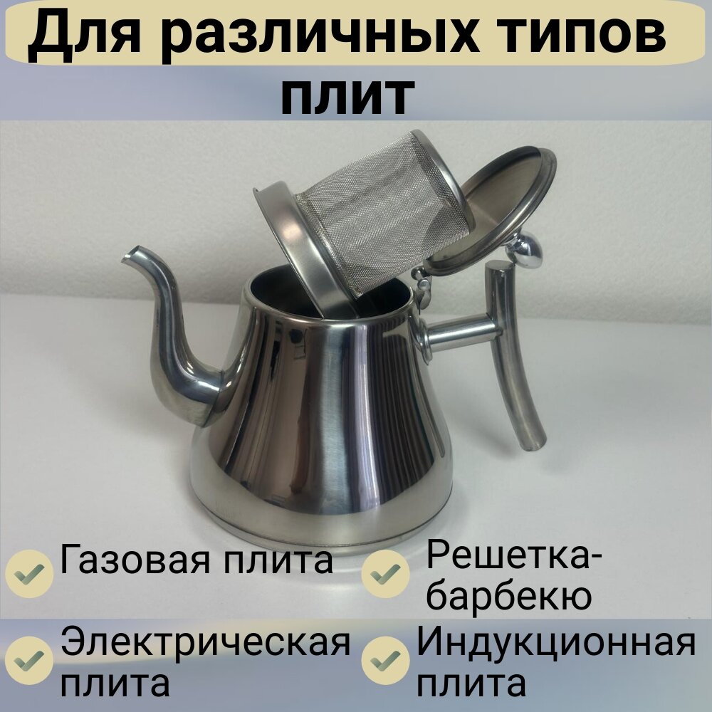 Чайник заварочный MARVIK 1000мл / Прочный чайник для заварки / Металлический заварочный чайник информация: