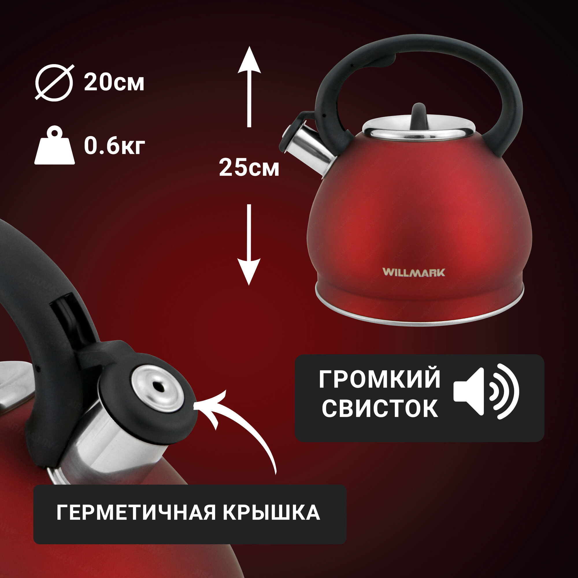 Чайник Willmark Wtk-4221ss красный 3,5л,нерж.,сви информация: