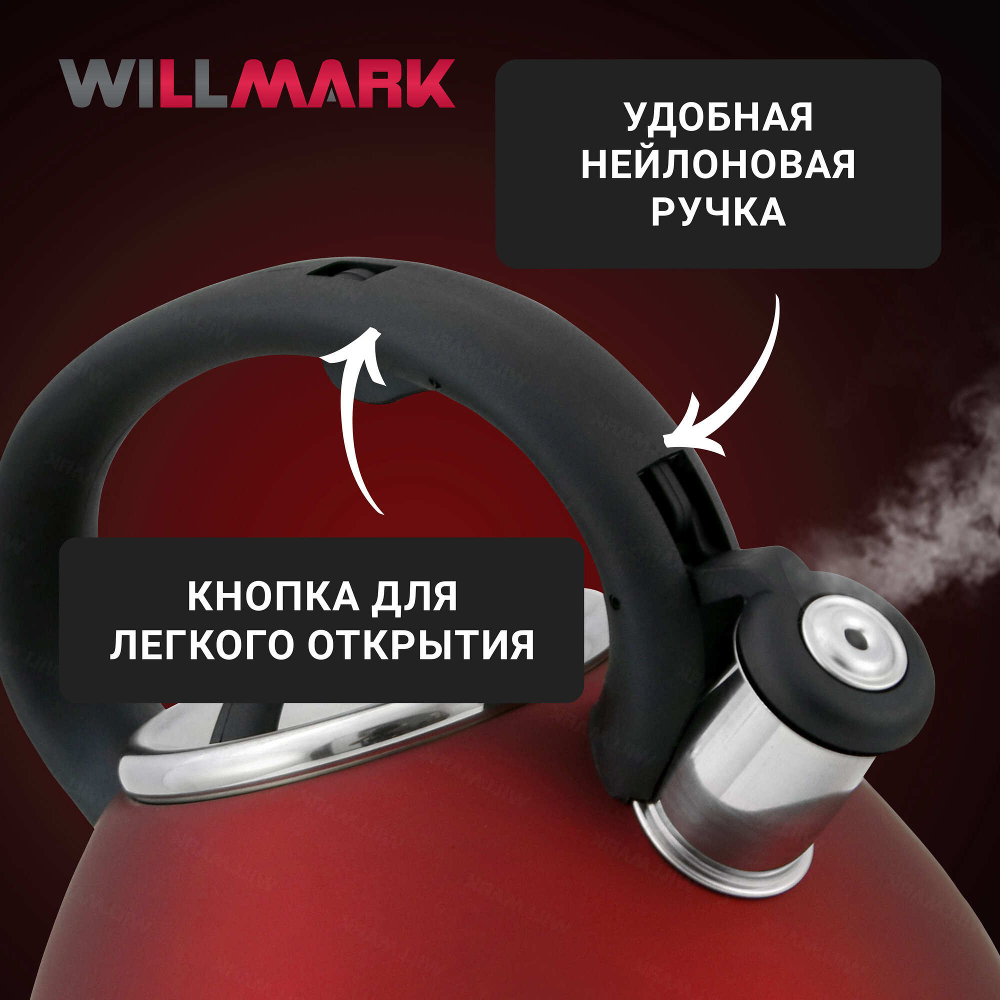 Чайник WILLMARK WTK-4221SS (3,5л, со свистком, с крышкой, нейлоновая ручка,техн. Easy spout open) информация: