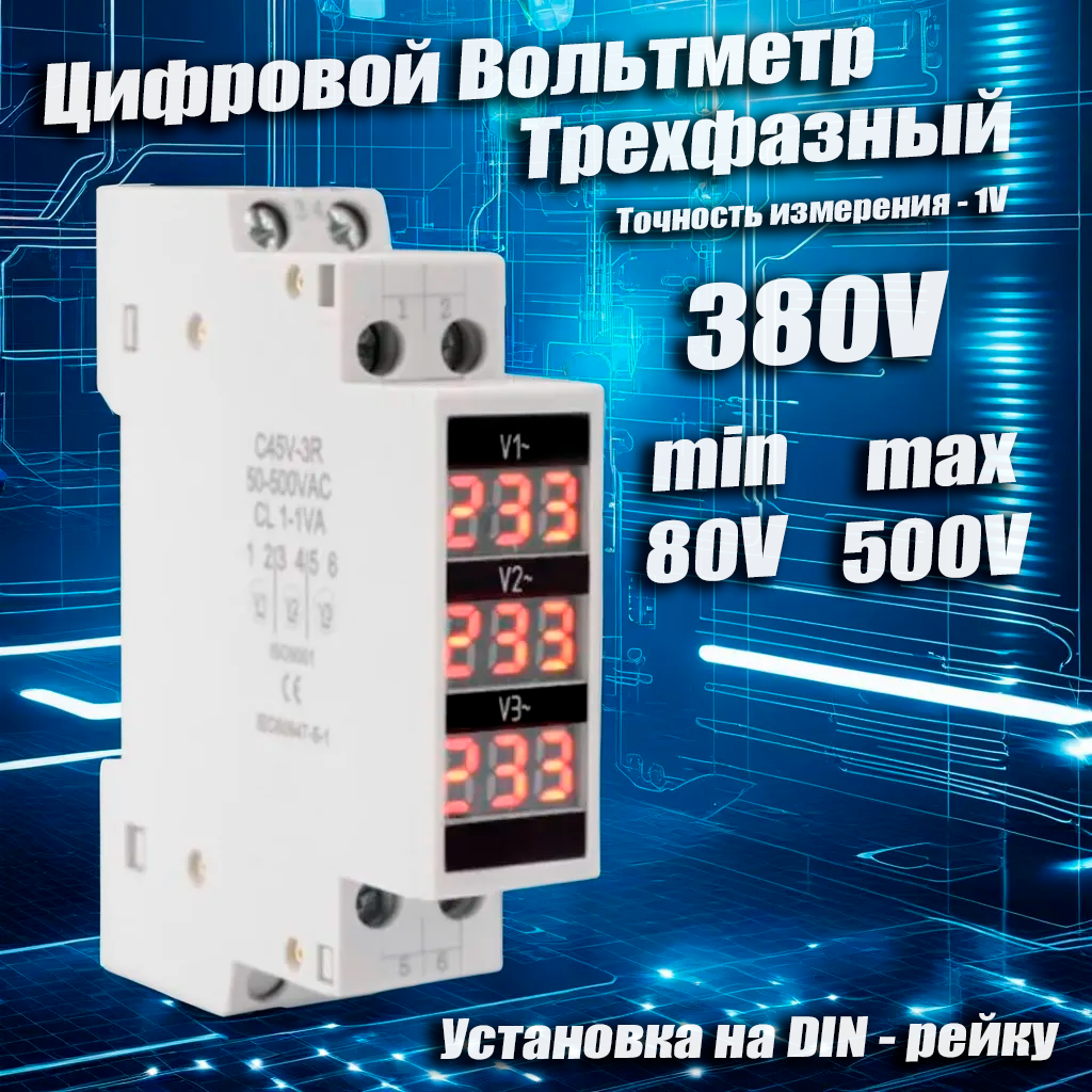 Монитор переменного тока, цифровой вольтметр трехфазный, на DIN-рейку информация: