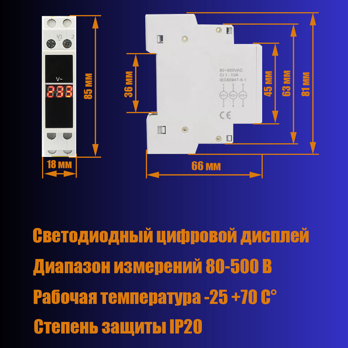 Монитор электросети переменного тока, цифровой вольтметр на DIN рейку однофазный информация: