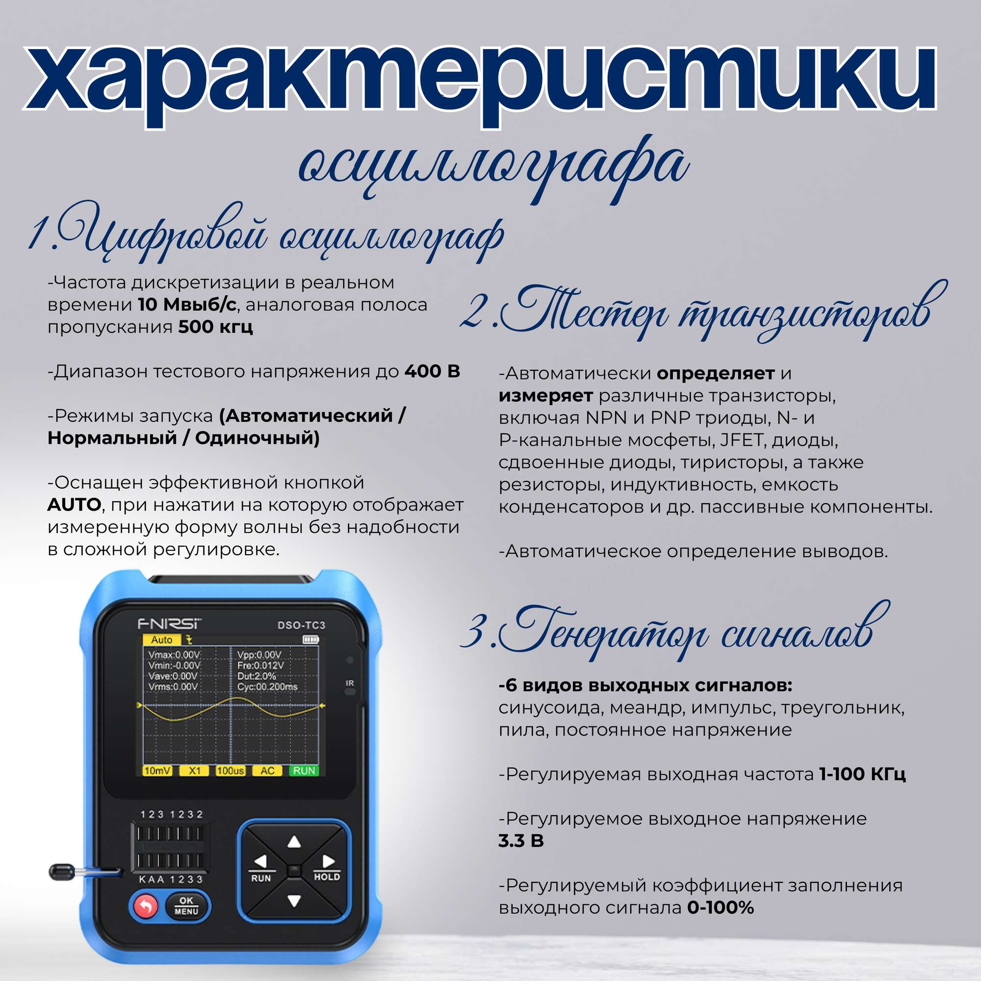 Осцилограф + тестер радиодеталей + генератор сигналов 3в1 FNIRSI DSO-TC3 информация: