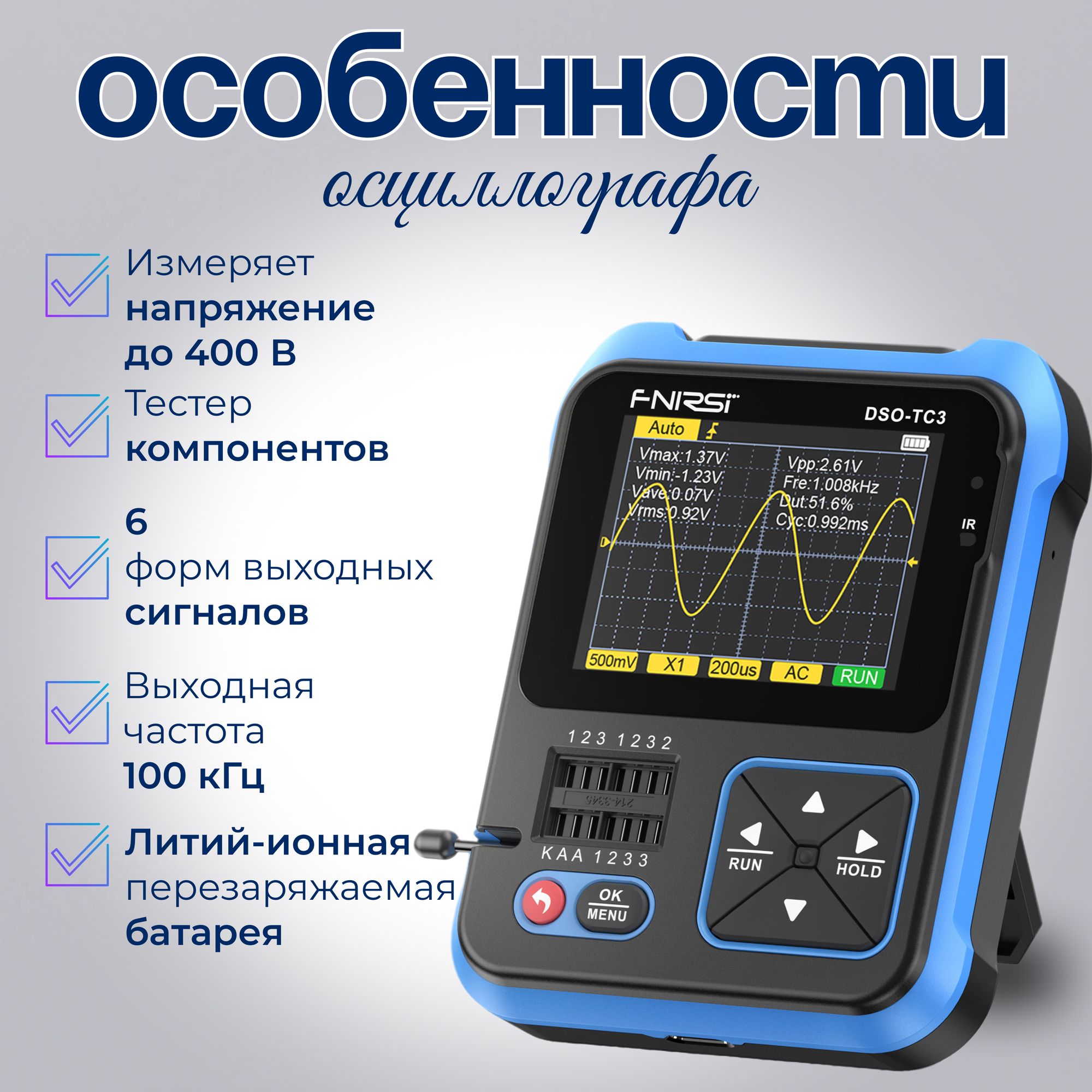 10 цен на Осцилограф + тестер радиодеталей + генератор сигналов 3в1 FNIRSI DSO-TC3