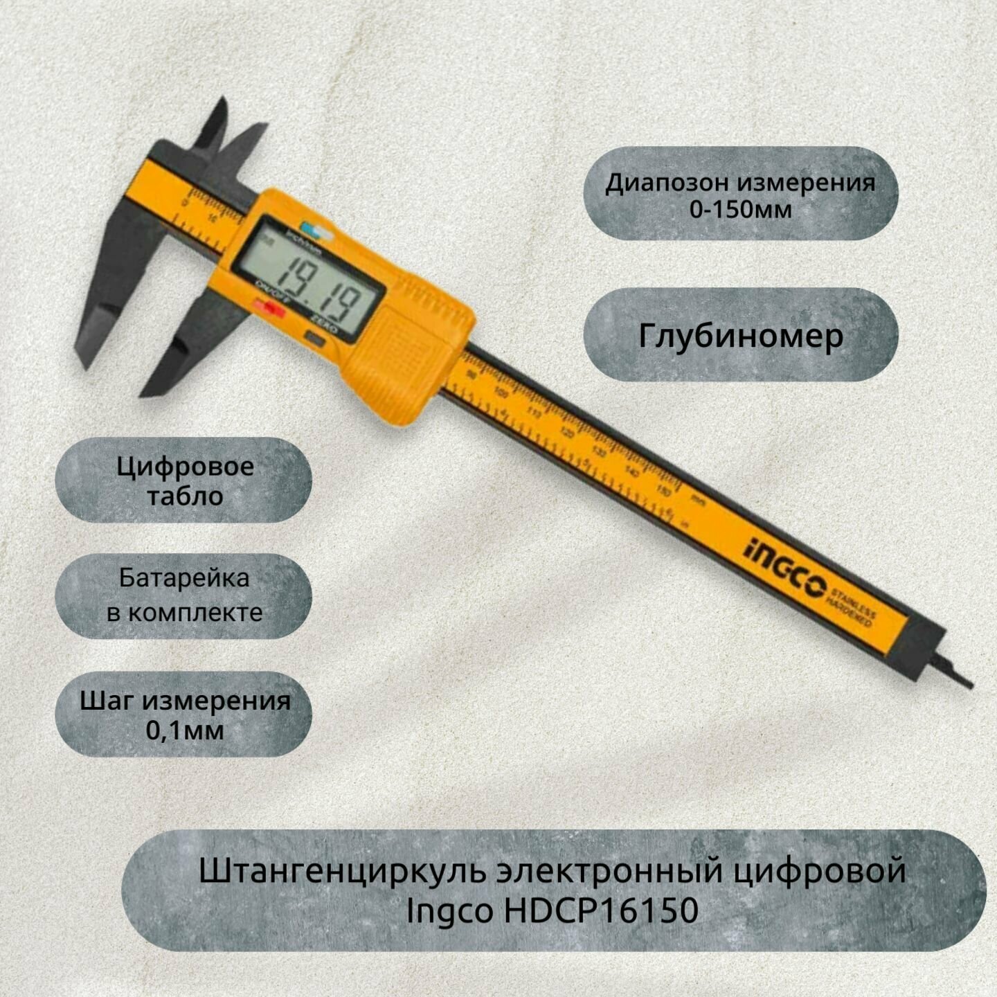 Штангенциркуль электронный цифровой глубиномер 0-150мм INGCO HDCP16150 информация:
