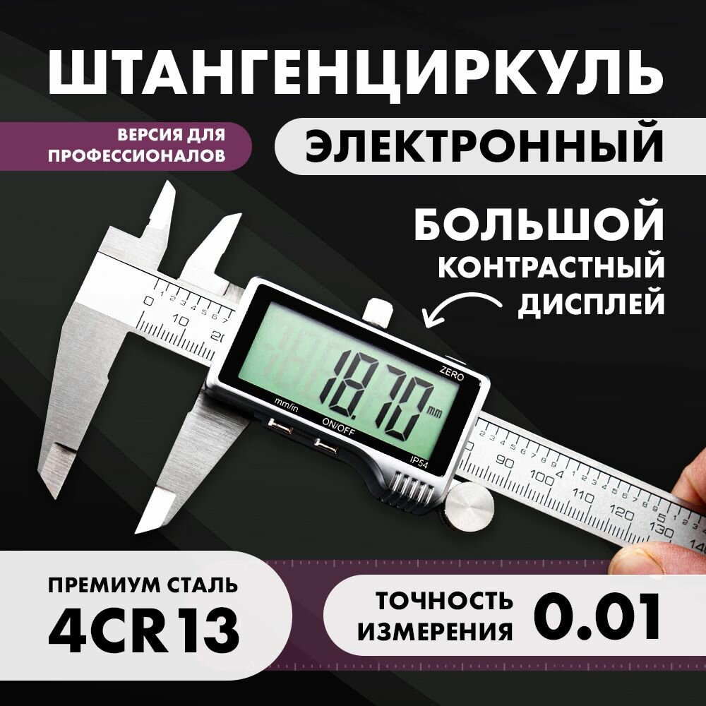 10 цен на Штангенциркуль электронный цифровой металлический с мегаэкраном до 150мм