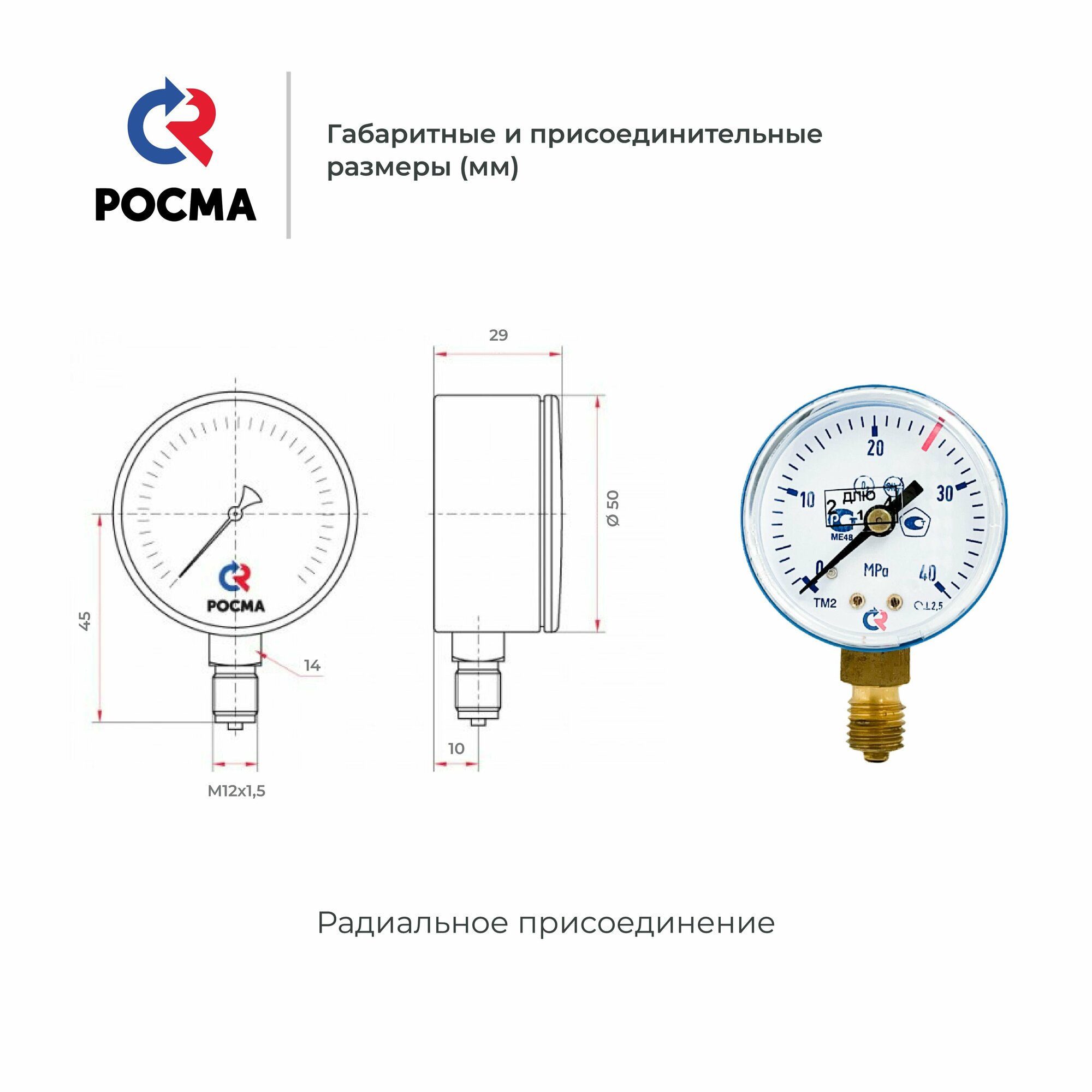 Манометр ТМ-210P.00(0-40 MРа)М12х1,5 класс точности 2,5 диаметр 50 мм. информация: