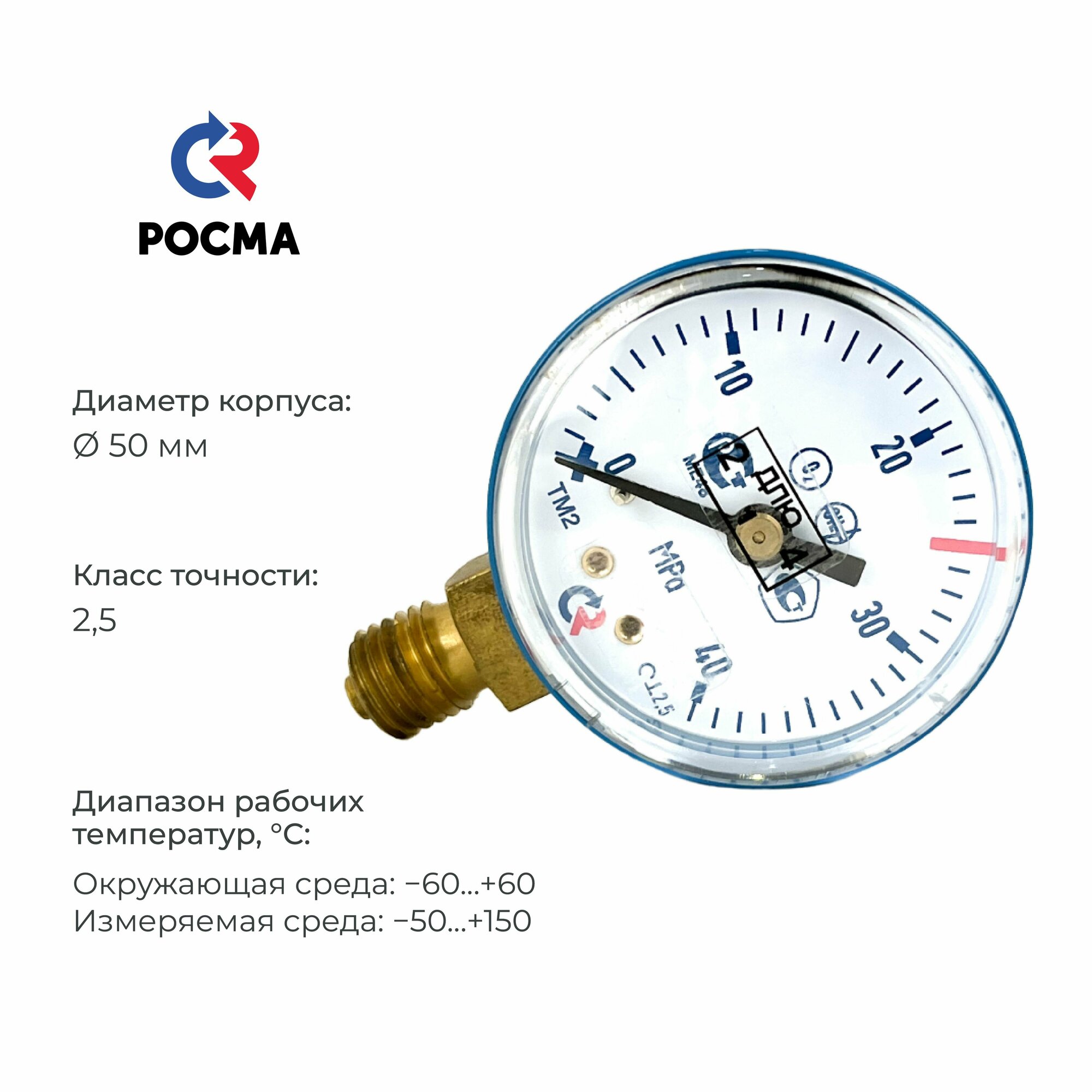 10 цен на Манометр ТМ-210P.00(0-40 MРа)М12х1,5 класс точности 2,5 диаметр 50 мм.