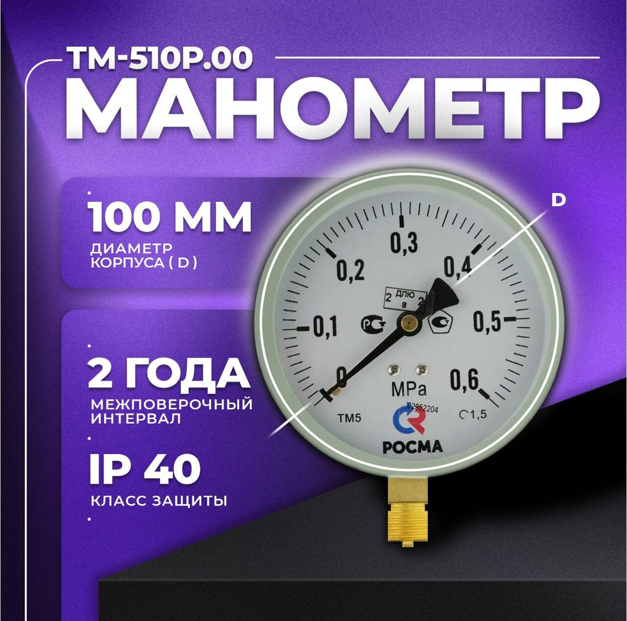 Манометр ТМ-510Р.00 (0...0,6 МПа) G 1/2": класс точности-1,5 М2 росма информация:
