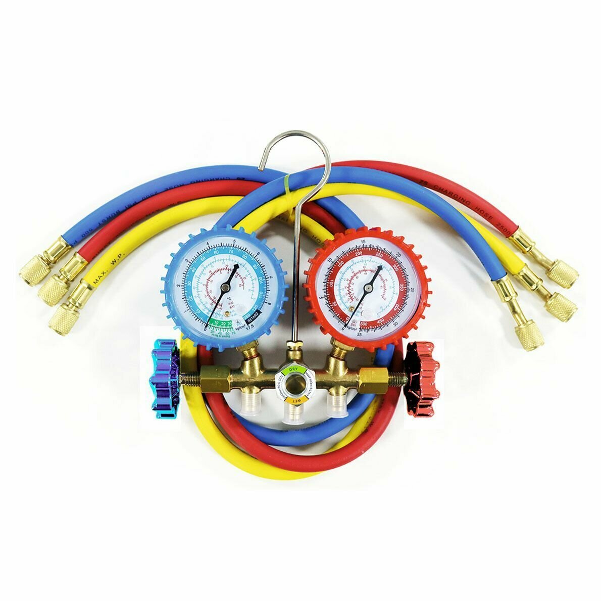 Отзывы на Манометрический коллектор заправочный 2х вентильный + 3 шланга 90см (подходит для R134a; R502; R22; R12)