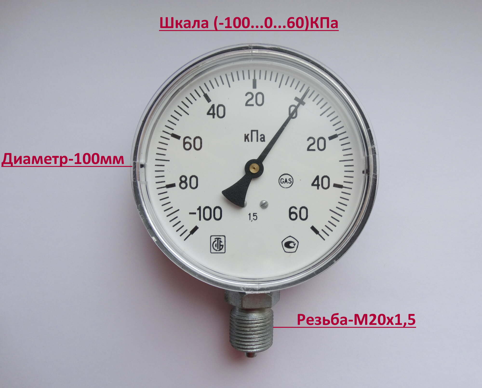 Мановакуумметр D100-(-100...0...60)КПа информация: