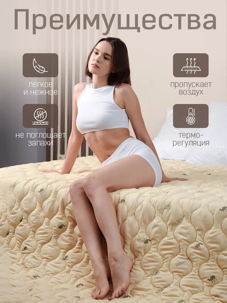 Двуспальное одеяло "Верблюжья Шерсть" зимнее 175х205 см, Зимнее, теплое, 500г/м2