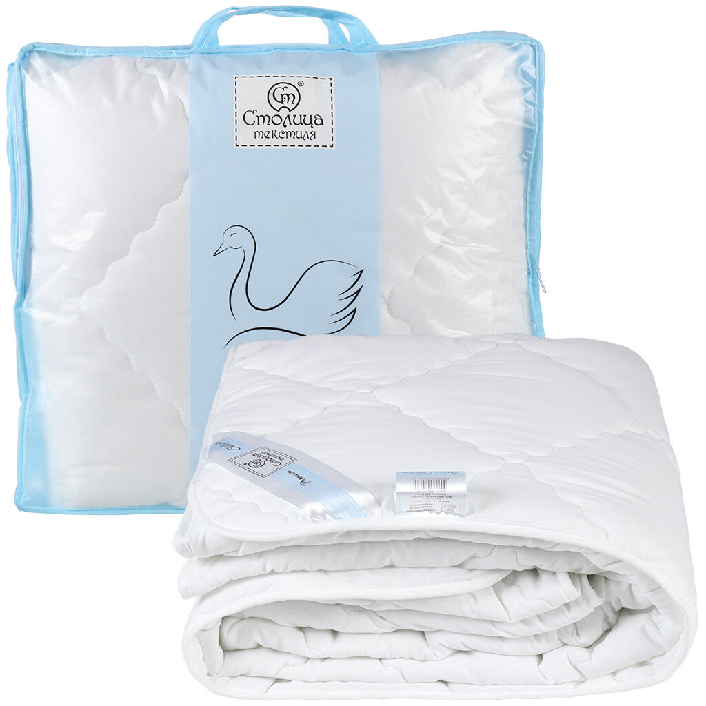 10 цен на Одеяло 1.5-спальное, 140х205 см, Премиум, Лебяжий искусственный пух, 300 г/м2, всесезонное, чехол хлопок, кант, Столица Текстиля