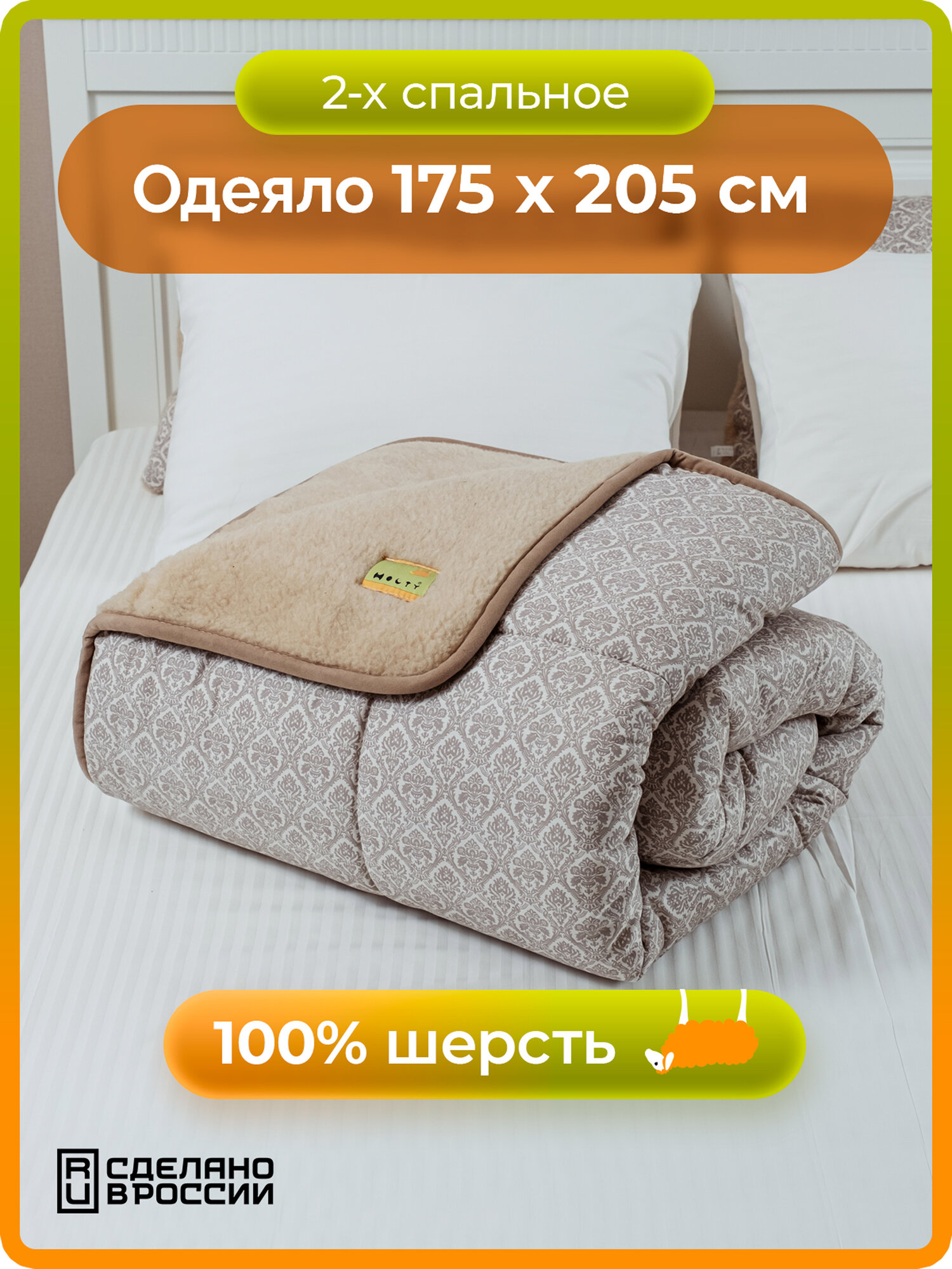 10 цен на Одеяло теплое из шерсти Классика Этюд 200*220, кофейный