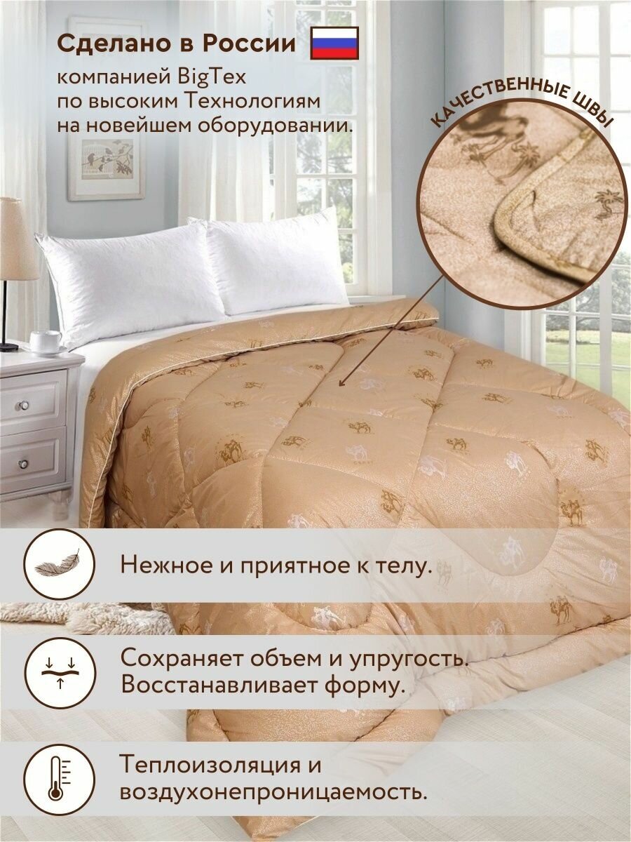 Двуспальное одеяло "Верблюжья Шерсть" зимнее 175х205 см, Зимнее, теплое, 500г/м2