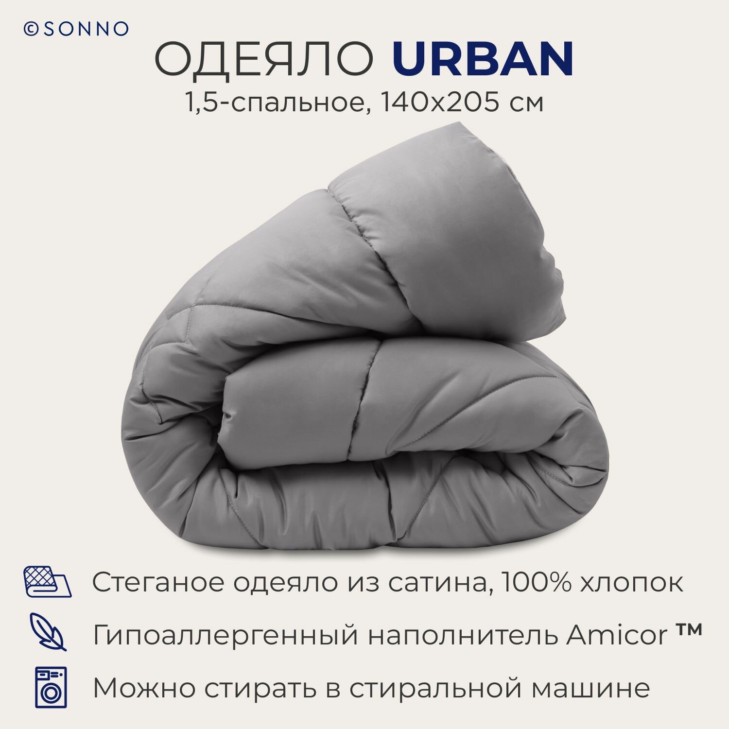 Отзывы на Гипоаллергенное одеяло SONNO URBAN, всесезонное,1,5-спальное, 140х205 см, цвета матового графита