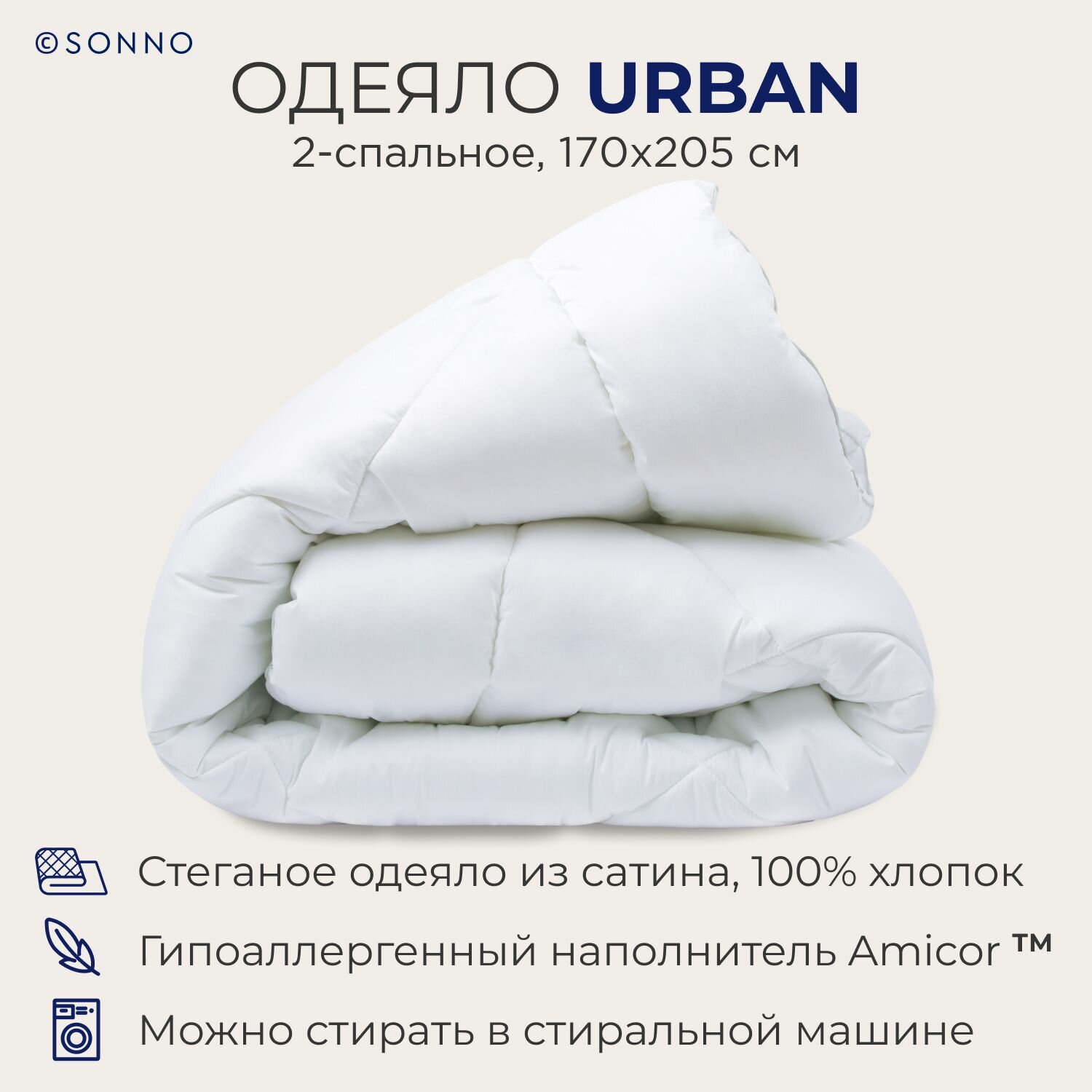 Гипоаллергенное одеяло SONNO URBAN, всесезонное,2-спальное, 170х205 см, цвет «ослепительно белый» информация: