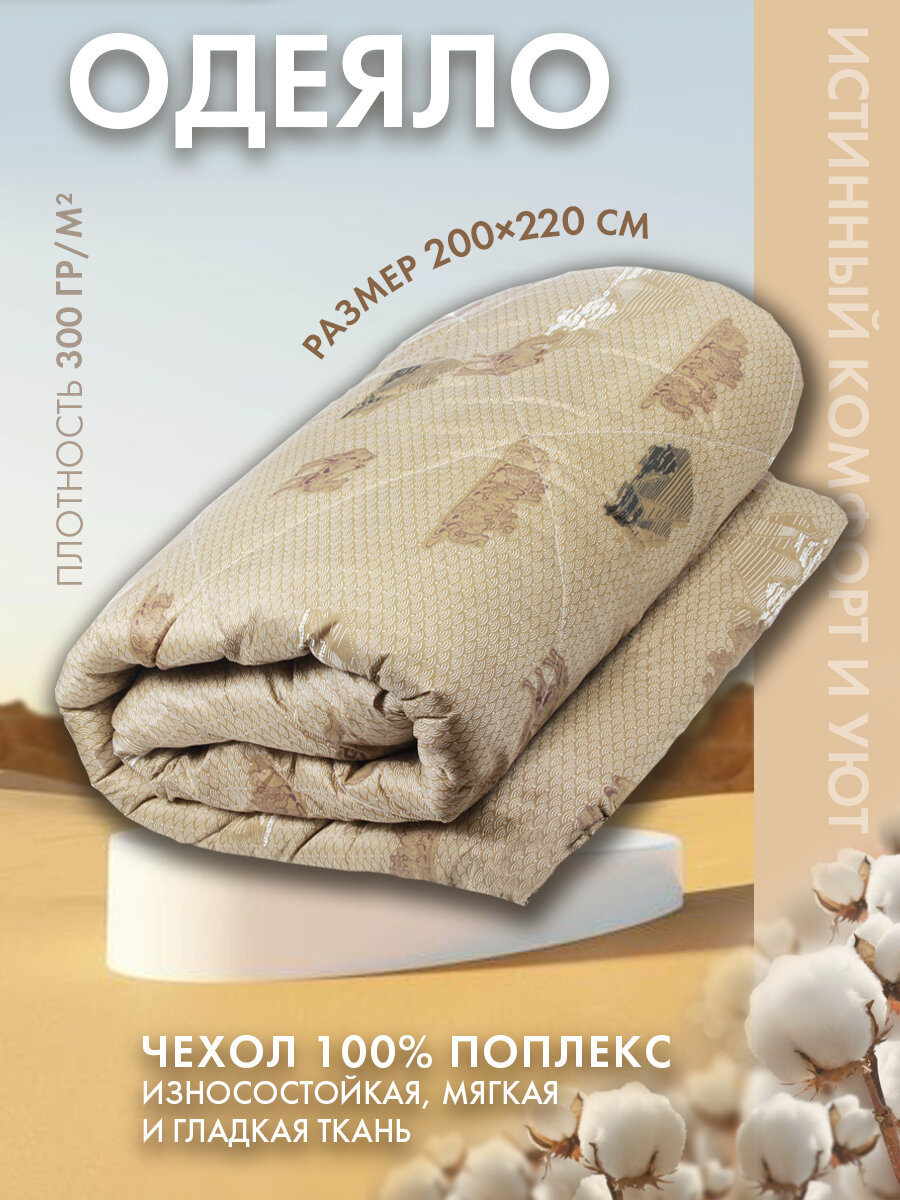Одеяло евро теплое и легкое для сна зимой и летом 200х220 см с верблюжьей шерстью информация: