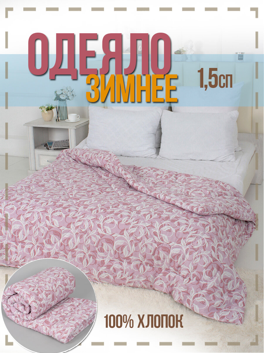 10 цен на Одеяло зимнее ватное 1.5 спальное розовое в бязи 100% хлопок