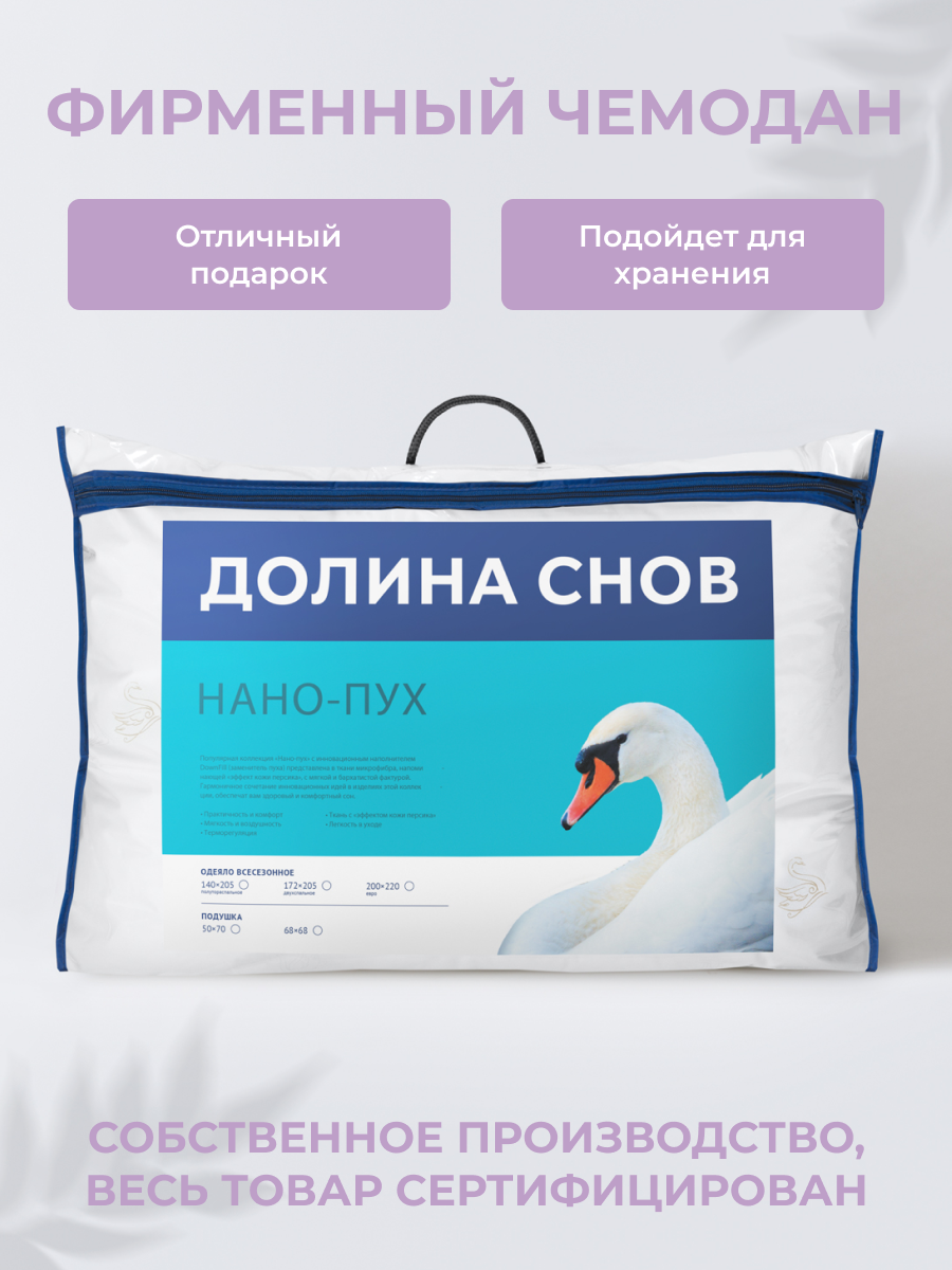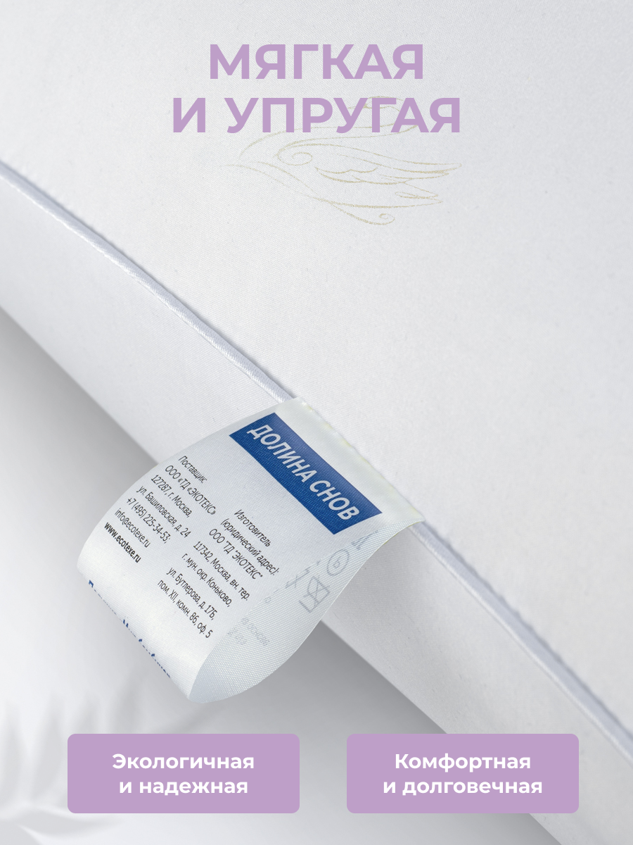 Подушка 50x70 см Долина снов "нано-пух", чехол - микрофибра (100% п/э), Ecotex информация: