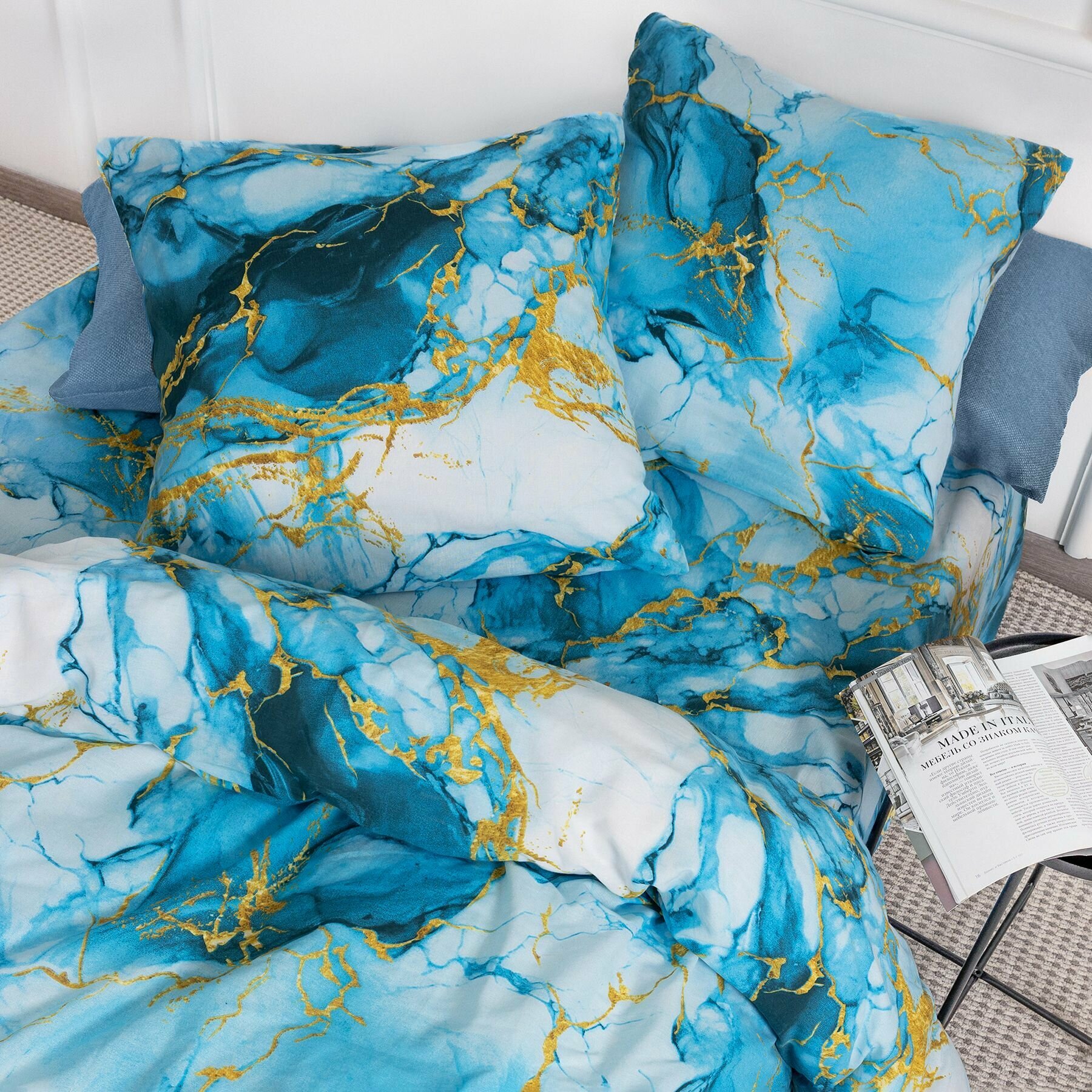 Отзывы на Комплект постельного белья 2-спальный с Евро простыней (2 нав. 70х70) Хлопок, Бязь GALTEX Мрамор бирюзовый