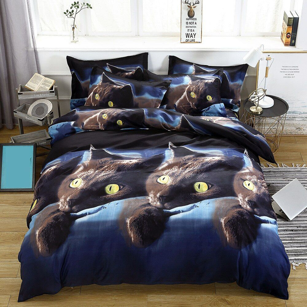 Комплект постельного белья 2 спальный, Поплин,Темно-синий,Кошки 1 890 ₽