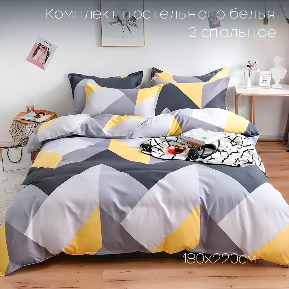 Постельное белье Сатин 2 спальный с простыней на резинках по углам Наволочки 70x70 Хлопок Aimee SAYA HOME Зигзаг 2 190 ₽