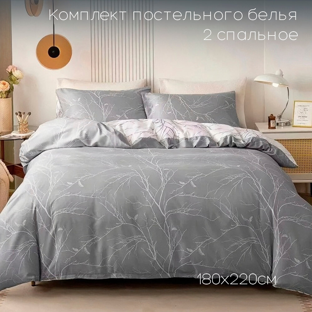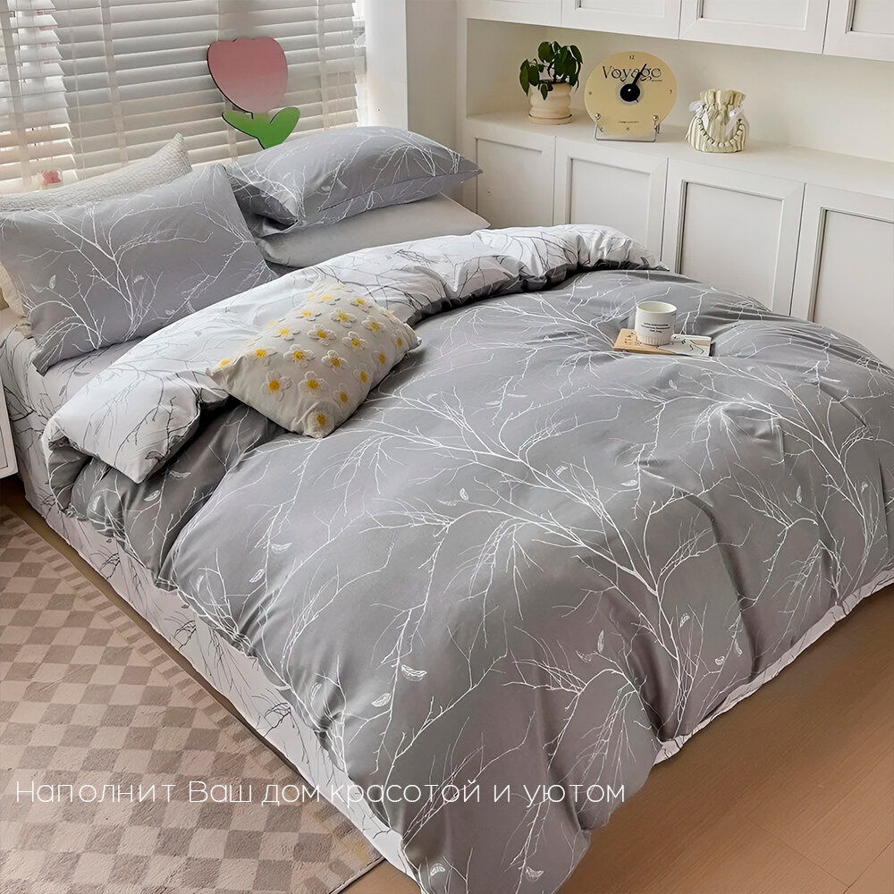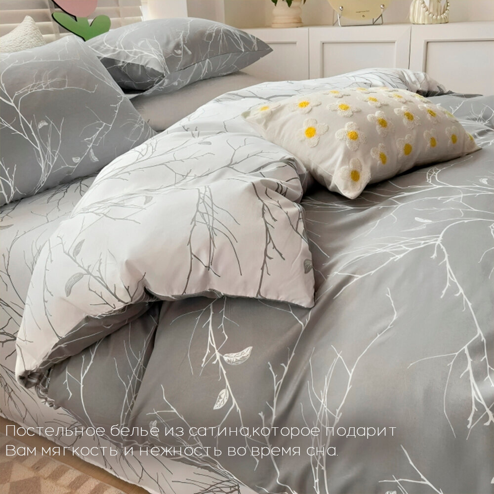 Постельное белье Сатин 2 спальный с простыней на резинках по углам Наволочки 70x70 Хлопок Aimee SAYA HOME Серый. 2 190 ₽